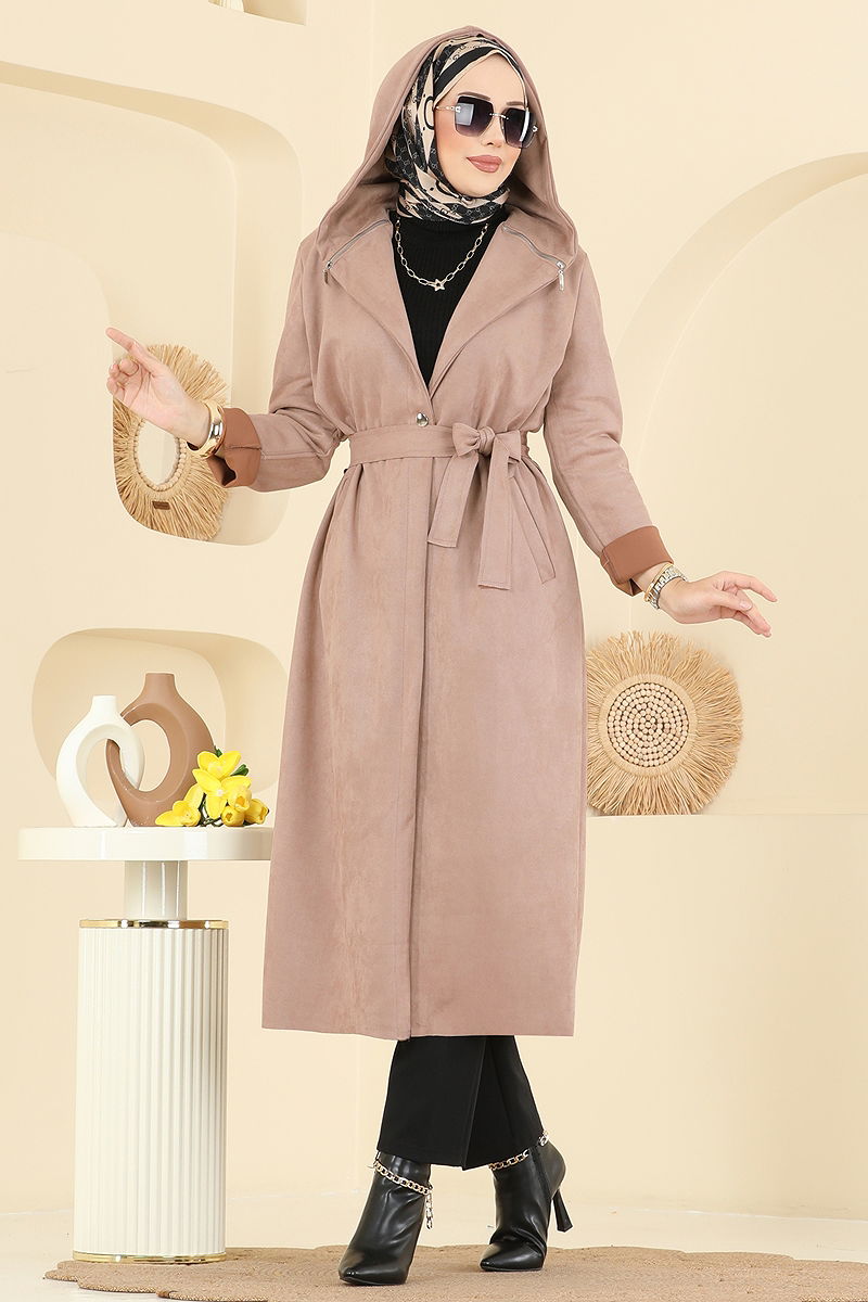 Kapşonlu Süet Kap Pudra Vizyon