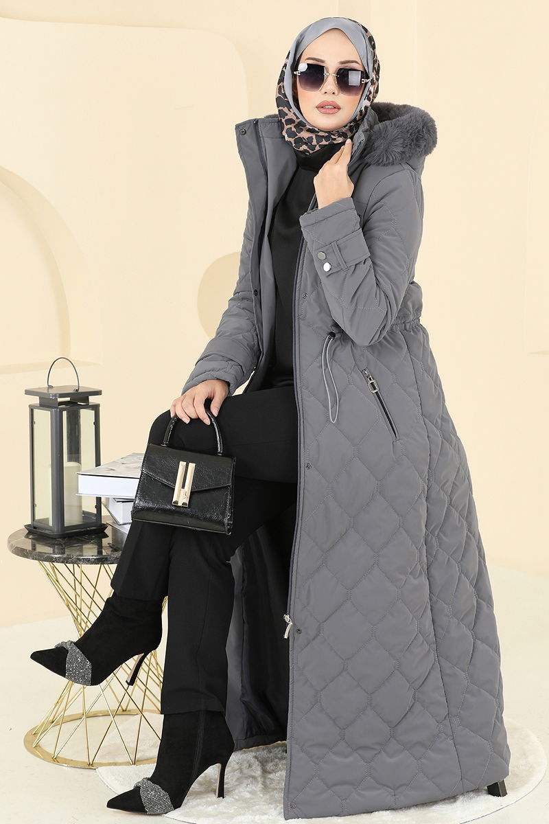 Product Feature : It is a new season hijab fashion product. There are snaps that can be used from the front. The hood is detachable and can be used optionally. It is lined. The product has a zipper at the From the front part. Hood fur is sewn into the product. The pocket has a zipper. Cuff buttons are accessories. There may be a tonal difference in the product due to concept photo shoots.