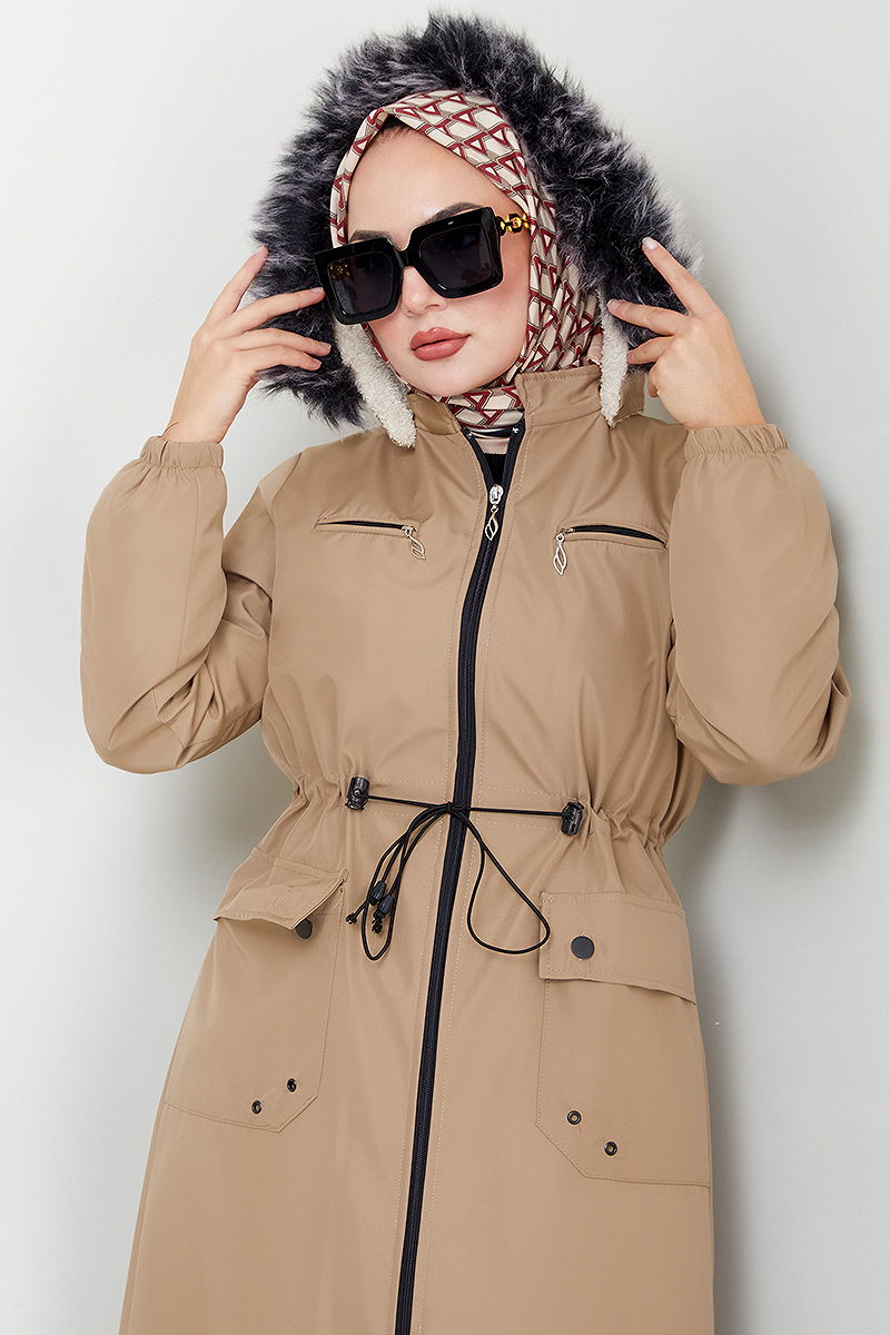 Ürün Özelliği : Yeni sezon tesettür moda ürünüdür. Ürün Kapşonlu yakadır. Astarı kürklüdür.. Ürün Önden fermuarlıdır. Kapşon ürüne dahildir, isteğe bağlı kullanılmayabilir. Göğüs cep aktiftir. Manşeti lastikli ve bağlamalıdır. Konsept fotoğraf çekimlerinden dolayı üründe ton farklılığı olabilir.
