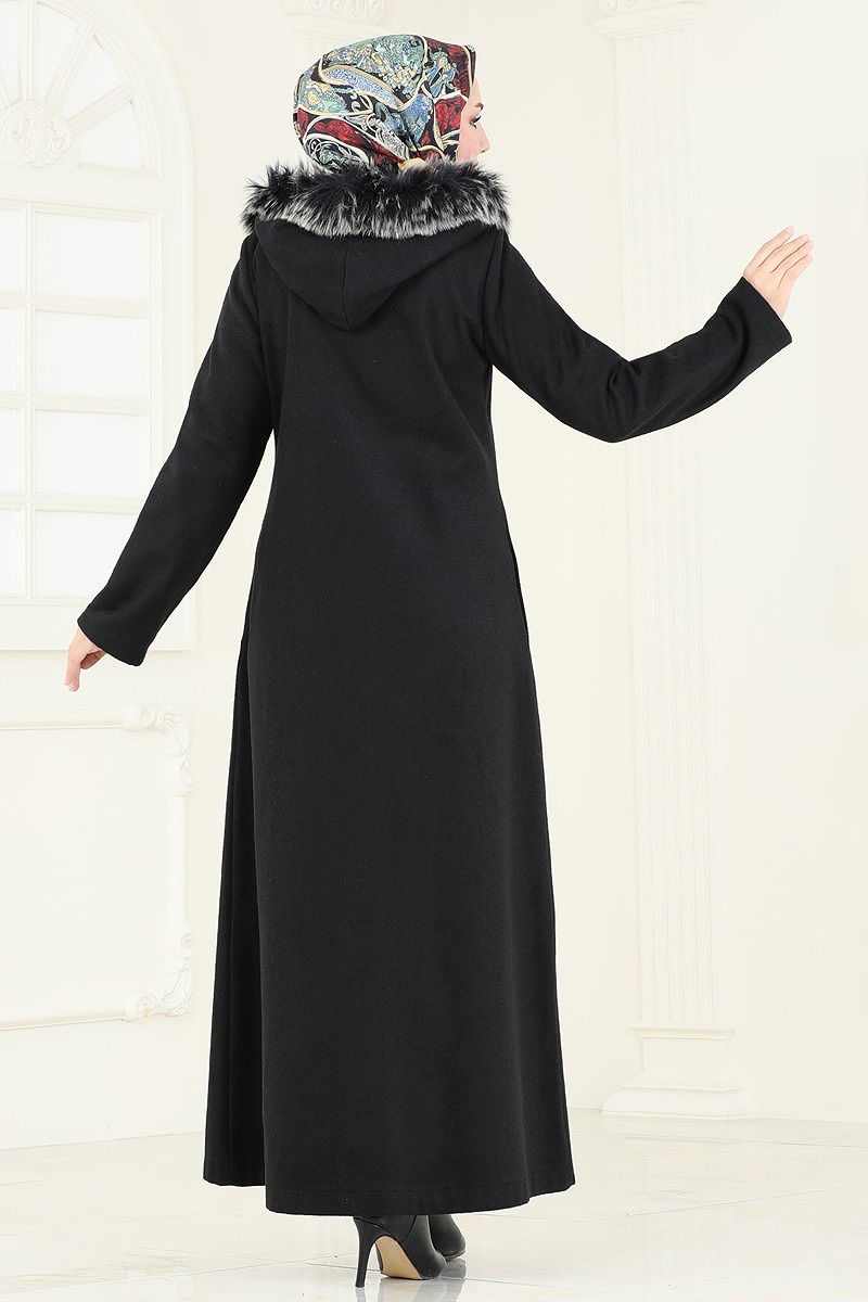 Kapşonu Kürklü Kaban model tesettür ürünüdür. Sonbahar ve Kış sezonunda kullanılabilir. Sadece kuru temizleme yapılmalıdır. Kaşe kumaştan imal edilmiştir. Ürün Kapşonlu yakadır. Astarsızdır. Ürün Önden fermuarlıdır. (Modelin üzerindeki ürün 38 bedendir.) Boy: 160 cm, Göğüs: 86 cm, Bel: 68 cm, Basen: 95 cm, Kilo: 55 kg. Kürk ürüne dikilidir. Kapşon ürüne dahildir, isteğe bağlı kullanılmayabilir. Cep mevcuttur.