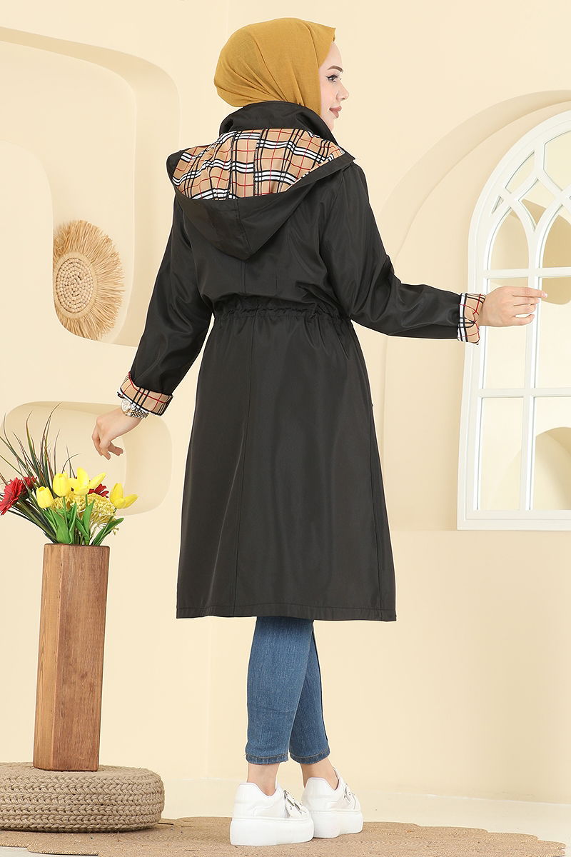 Kapüşon Detaylı Bondit Trençkot Siyah