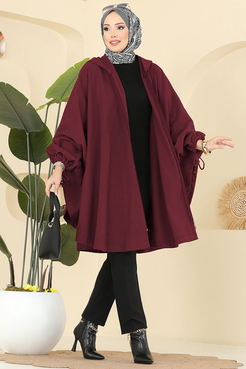 Kapüşon Detaylı Kaşe Panço 0505ERK1158 Bordo