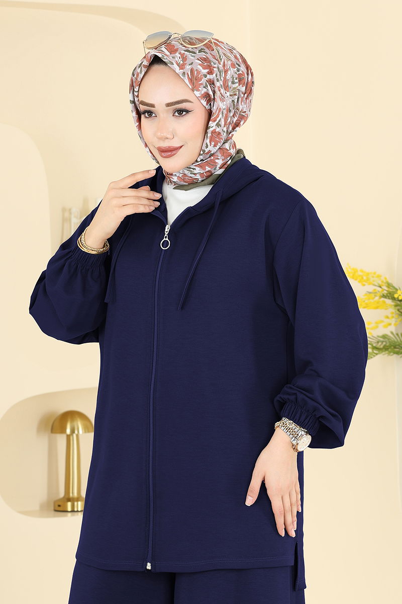 Ürün Özelliği : Yeni sezon tesettür moda ürünüdür. Yaka bağcık aktiftir. Pantolonda cep mevcuttur. Ürün Kapşonlu yakadır. Yırtmaçlıdır.. Astarsızdır. Ürün Önden fermuarlıdır. Kapşon ürüne dikilidir. Pantolon beli lastiklidir. Manşeti lastiklidir. Konsept fotoğraf çekimlerinden dolayı üründe ton farklılığı olabilir.