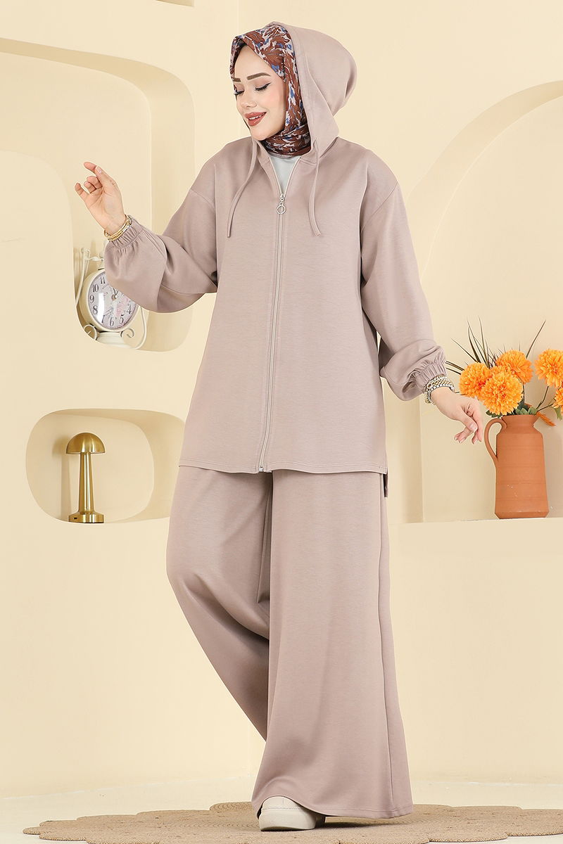 Ürün Özelliği : Yeni sezon tesettür moda ürünüdür. Yaka bağcık aktiftir. Pantolonda cep mevcuttur. Ürün Kapşonlu yakadır. Yırtmaçlıdır.. Astarsızdır. Ürün Önden fermuarlıdır. Kapşon ürüne dikilidir. Pantolon beli lastiklidir. Manşeti lastiklidir. Konsept fotoğraf çekimlerinden dolayı üründe ton farklılığı olabilir.