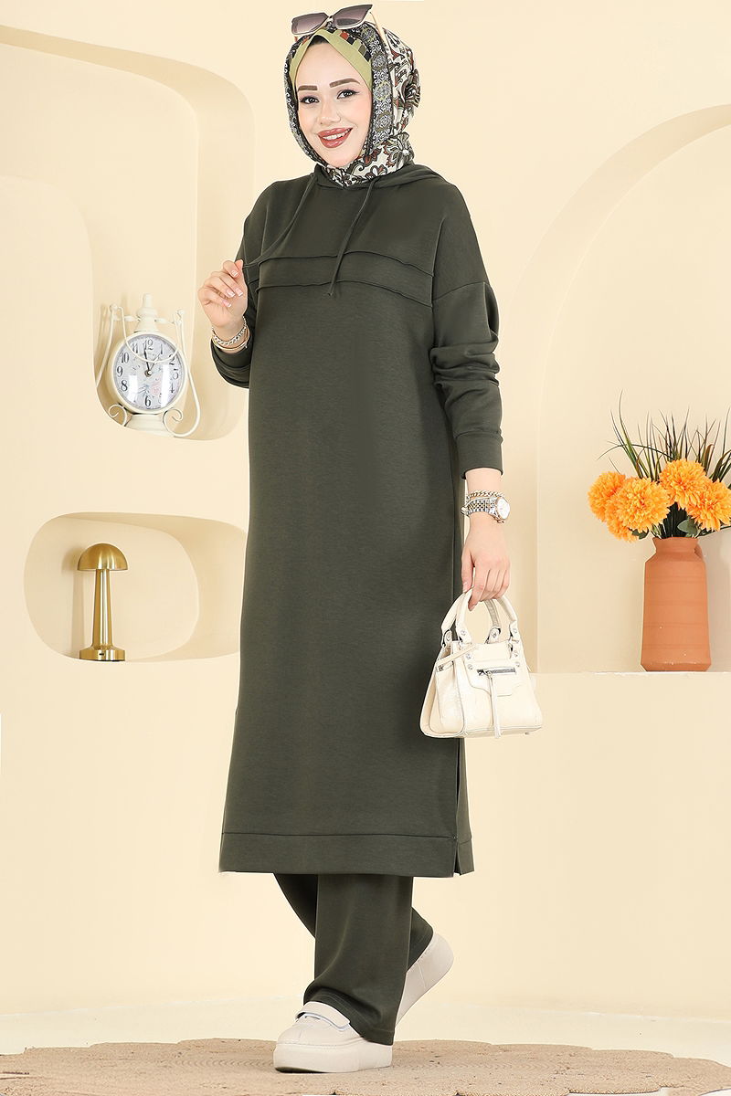 Kapüşon Detaylı Modal Takım Koyu Haki