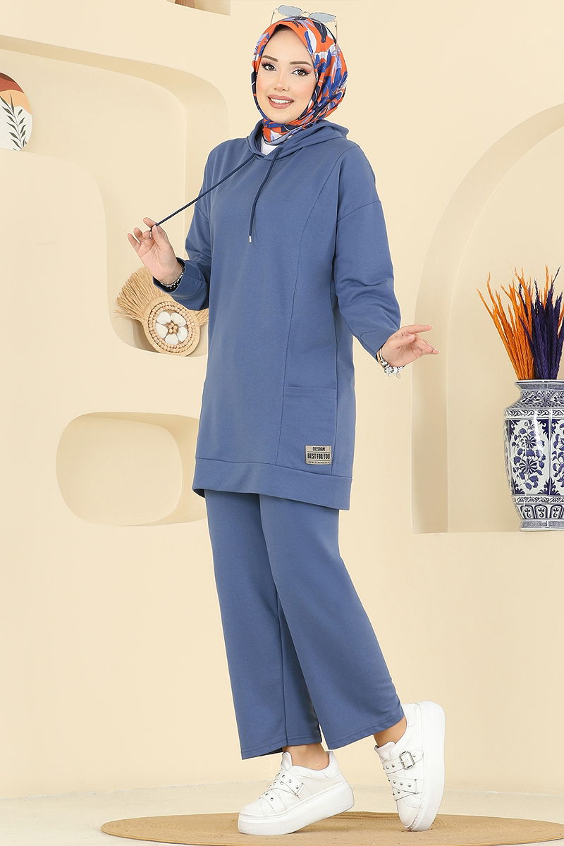 Kapüşon Detaylı Spor Takım İndigo