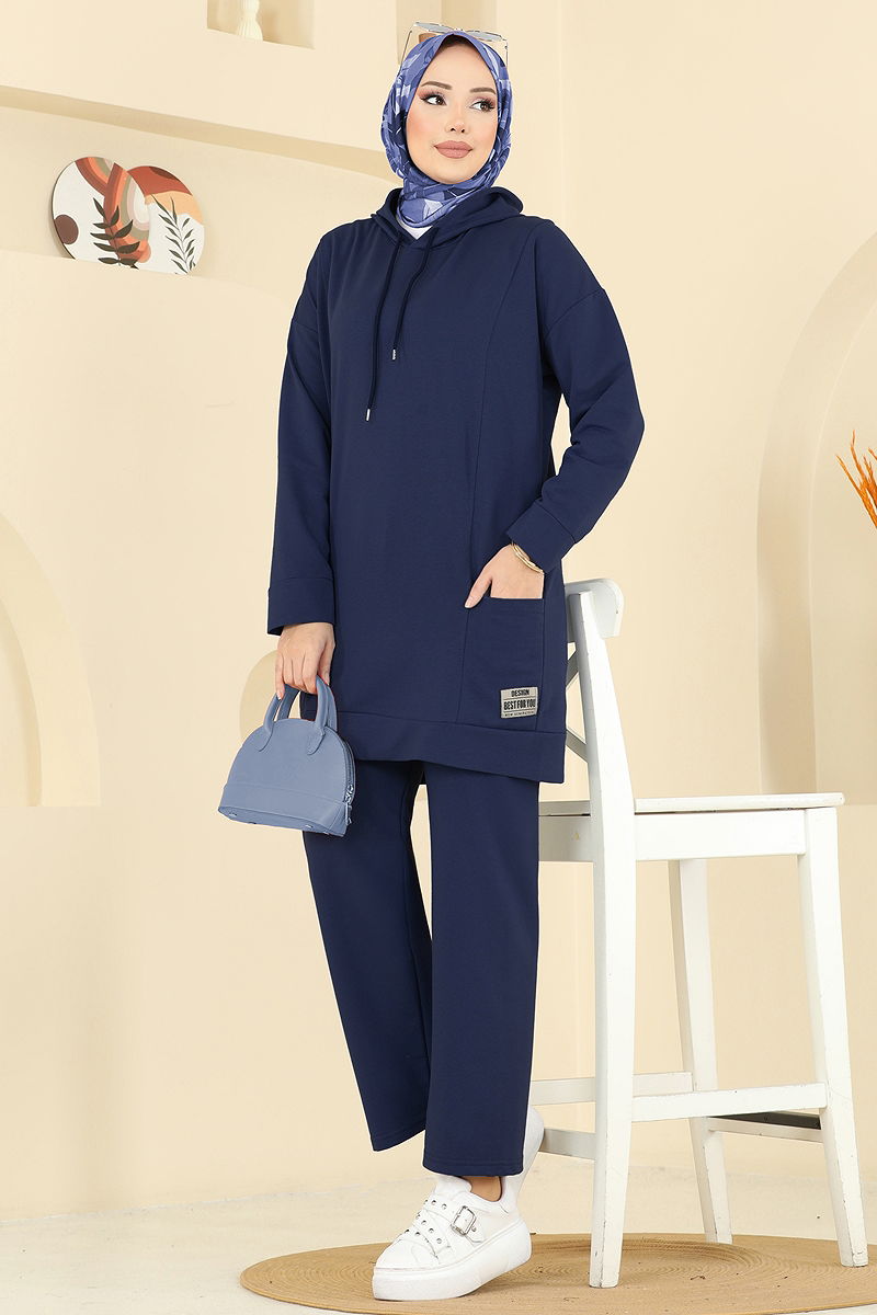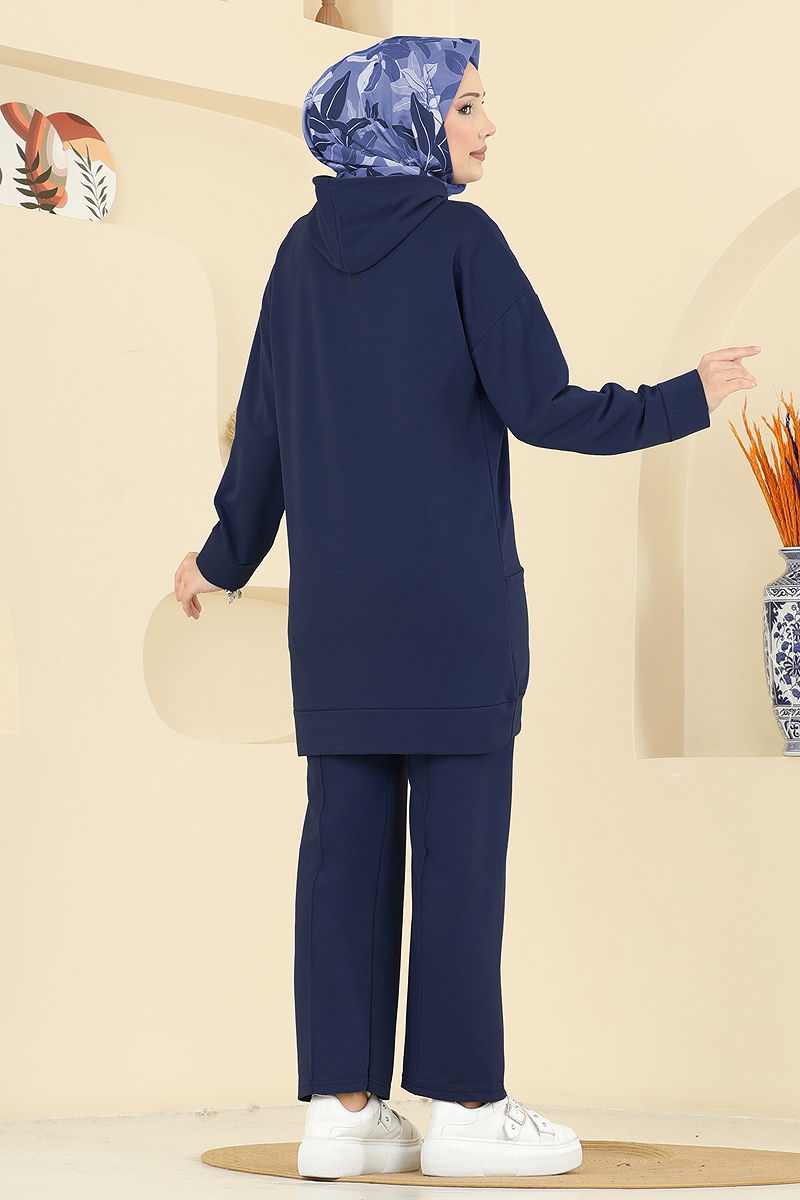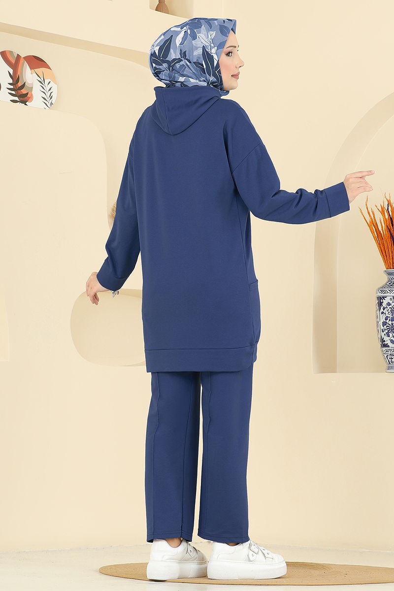 Son derece rahat ve şık, Kapüşon Detaylı Spor Takım ürünümüz dört mevsim rahatlıkla kullanılabilen bir tesettür kombinidir. İki iplik kumaştan üretilen bu takım, hem kaliteli hem de dayanıklı bir yapıya sahiptir. Tunik ve pantolondan oluşan bu set, hassas yıkama ile 30 derecede yıkanabilmekte ve kolayca bakımı yapılabilmektedir. Ürün kapüşonlu bir yakaya sahiptir ve astarsızdır. Modelin üzerindeki ürün 38 bedendir, bu da her vücut tipine uyum sağlayabilecek elastik bir yapıya işaret etmektedir.