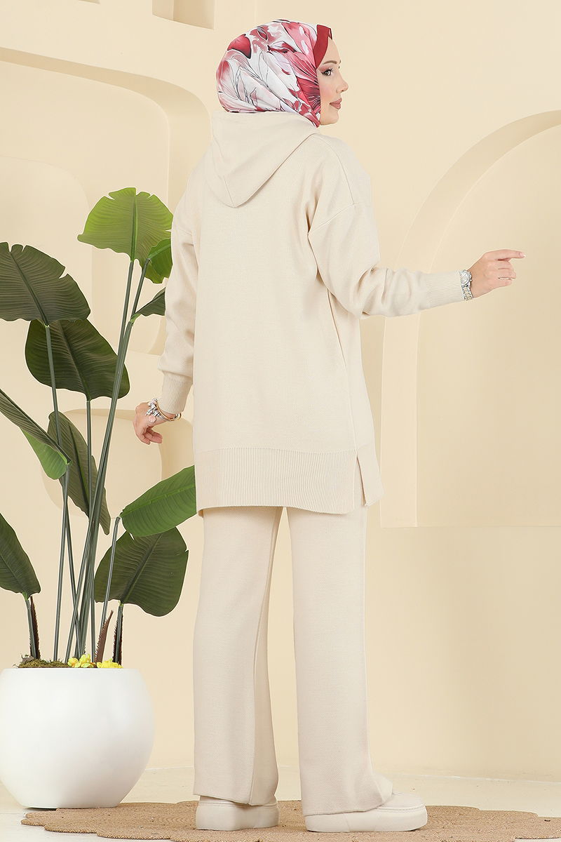 Kapüşon Detaylı Triko Takım 1079BRZ597 Taş