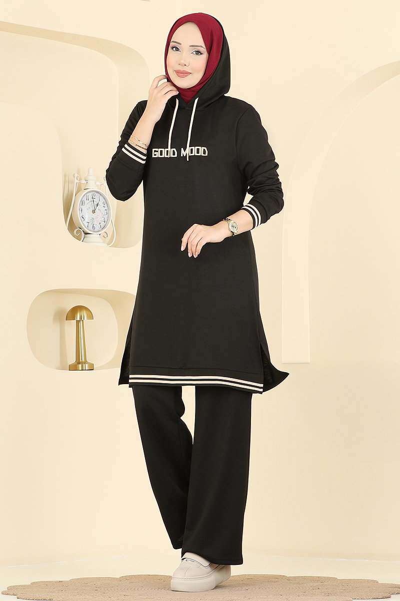 Kapüşonlu 2 li Günlük Takım Siyah