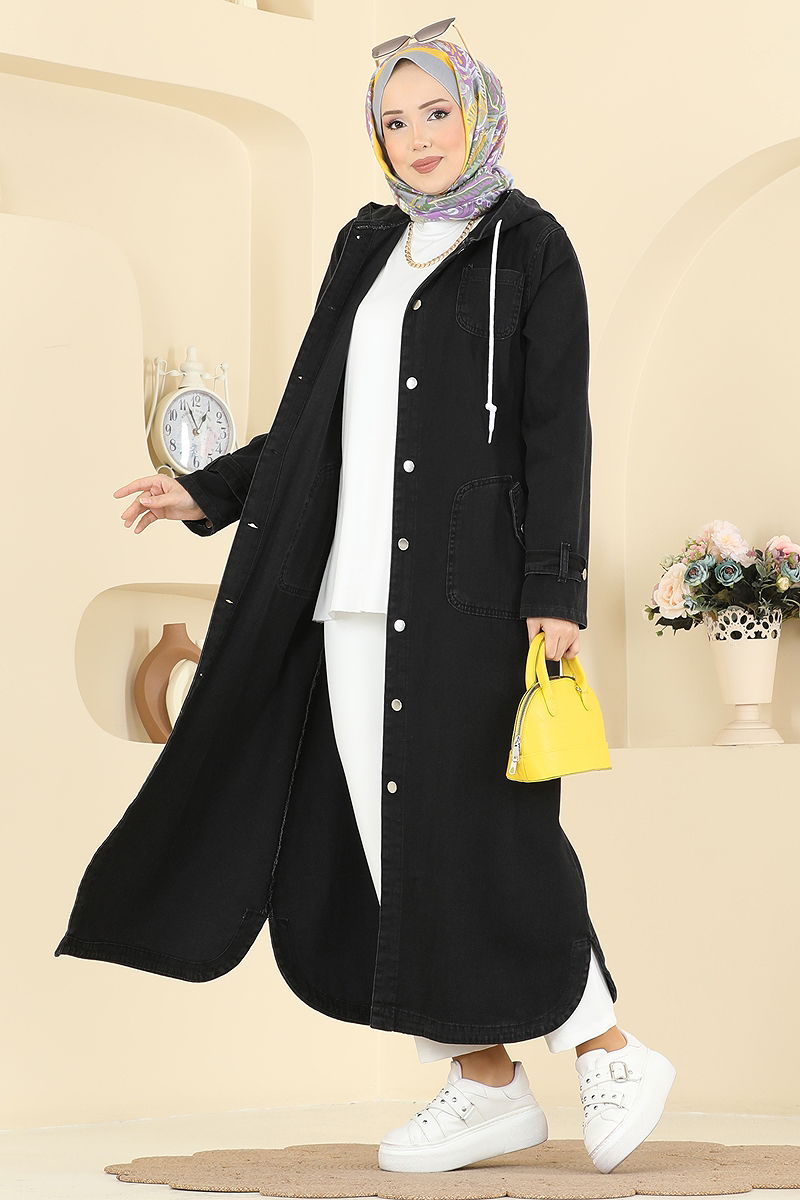 Kapüşonlu Kot Kap modeli, her türlü hava koşulunda kullanım için ideal olan tesettür ürünüdür. Dört mevsim giyebileceğiniz bu kap, 30 derecede hassas yıkama ile temizlenmelidir. Şık ve fonksiyonel tasarımı, kapüşonlu yaka ve ön düğmeli kapatma özellikleriyle ön plana çıkar. Ayrıca, ayarlanabilir yaka bağcığı ve pratik cepleri ile konforunuzu ve kullanışlılığı artırır. Dinamik görünümü manşet düğmeleri ile tamamlanmakta, astarsız yapısıyla hafif ve rahat bir kullanım sunmaktadır.