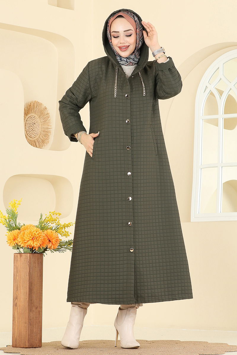 Kapüşonu Zincirli Kapitone Kap 1314-1ORG1169 Haki