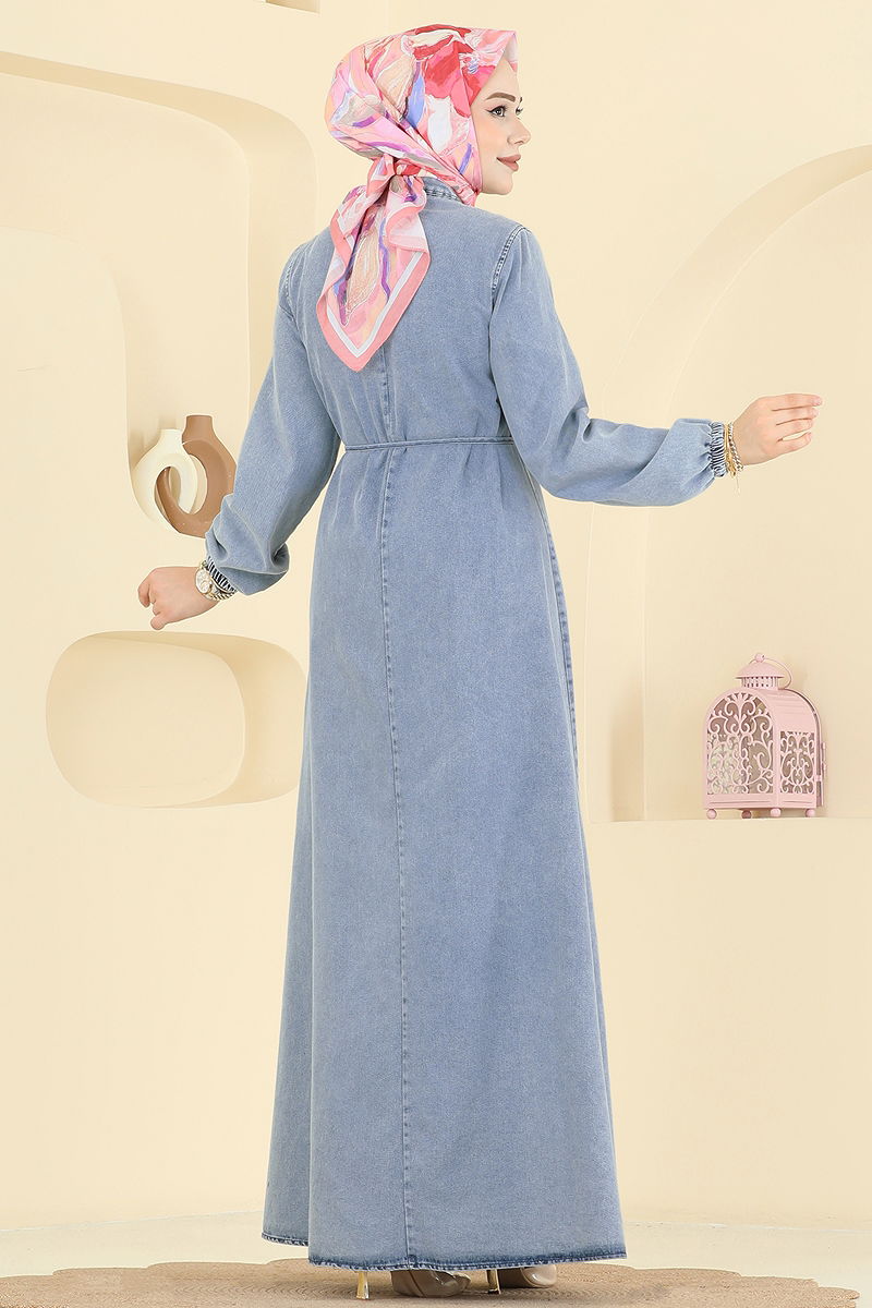 Kat Detaylı Kot Elbise Açık Kot