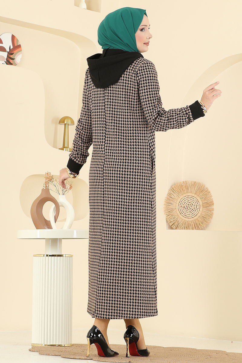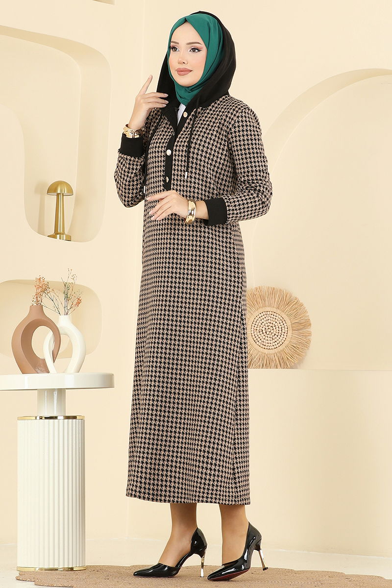Elegant ve şık bir görünüm sunan Kazayağı Desenli Tesettür Elbise, sonbahar ve kış aylarınızı sıcak tutacak. Hassas yapısıyla 30 derecede yıkanabilme özelliğine sahiptir. Kapşonlu yaka detayı ile modern bir dokunuş katarken, yarım düğmeli ön tasarımı pratik bir kullanım sağlar. Astarsız ve opak yapısı ile konforlu bir kullanım sunar. Hem günlük hem de özel günlerinizde tercih edebileceğiniz bu elbise, yanlarında bulunan cepleri ile de fonksiyonellik kazanmıştır.