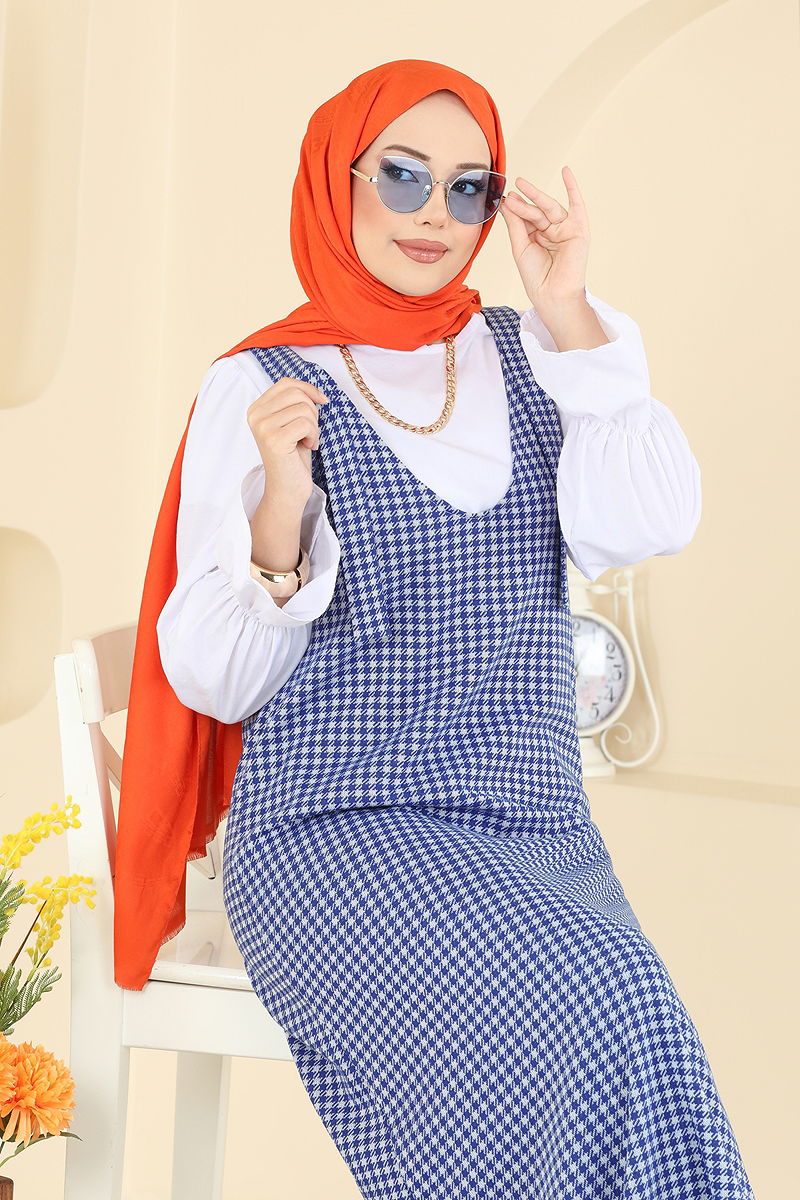 Kazayağı Gömlekli Jile Takım: KOMBİN modelimiz dört mevsim rahatlıkla kullanılabilir bir tesettür ürünüdür. Özel kazayağı desenli kumaşı ve pratik bisiklet yakası ile dikkat çeker. Astarsız yapısı ve sırt kısmında bulunan kullanışlı düğmesi ile konfor sunar. Hem jile hem de gömleğin manşetleri lastiklidir, bu da hareket özgürlüğü sağlar. Hassas giysiler için uygun olan bu takım, 30 derecede sıktırılmadan yıkanabilir.