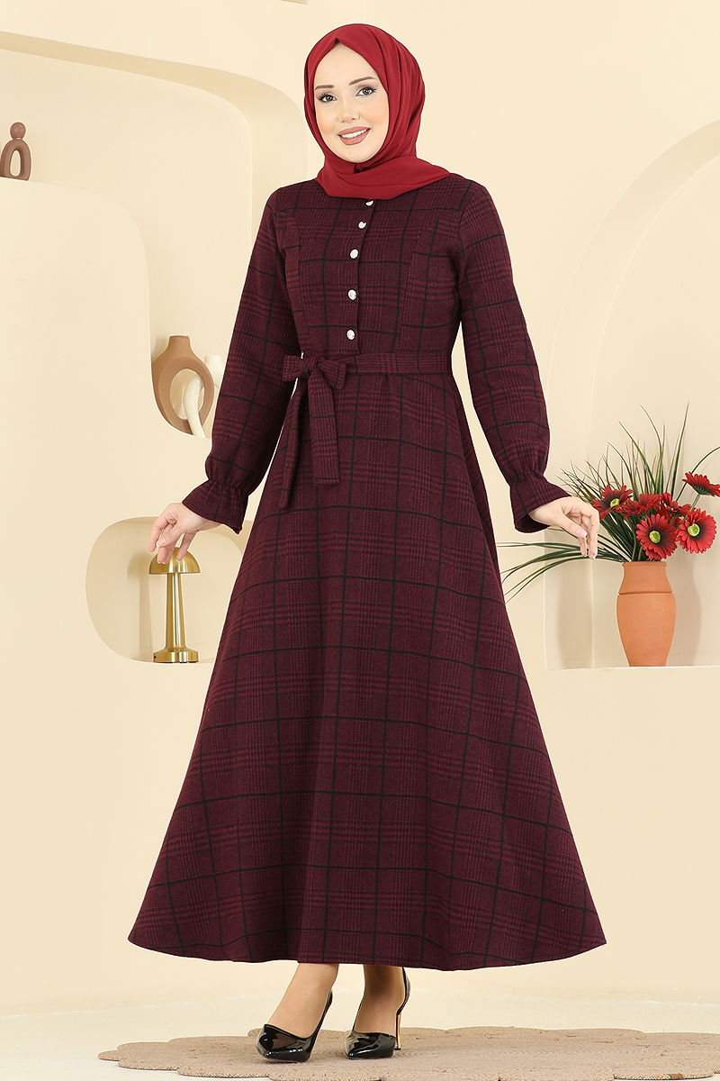 Kemer Detaylı Balıksırtı Elbise 24098UKBK1160 Bordo