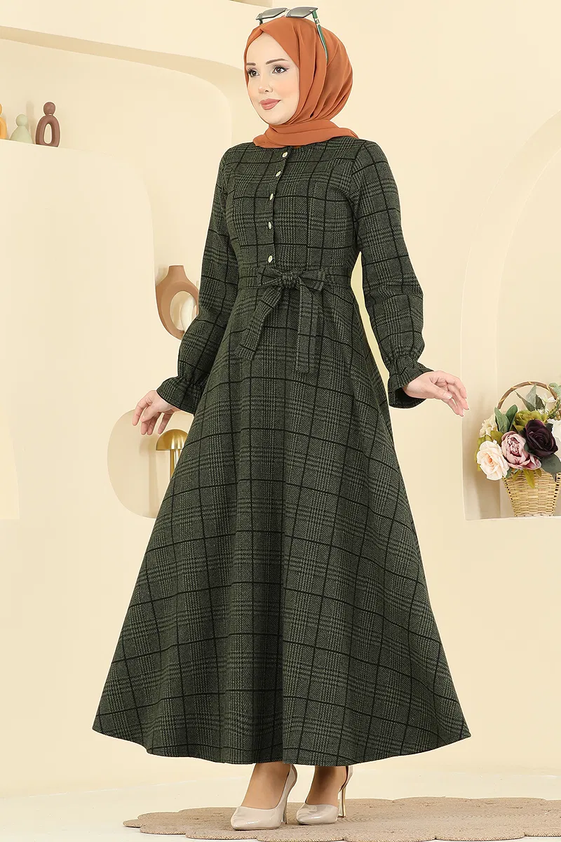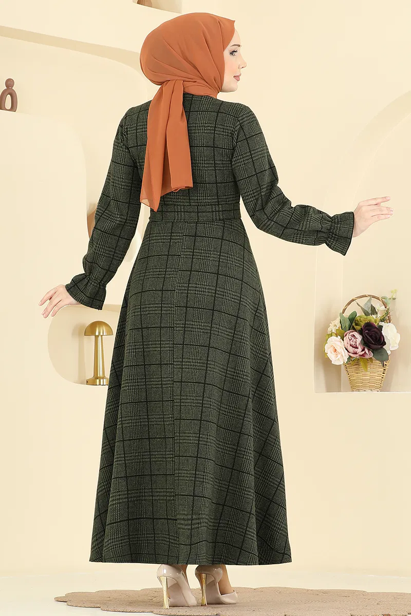 Kemer Detaylı Balıksırtı Elbise 24098UKBK1160 Haki