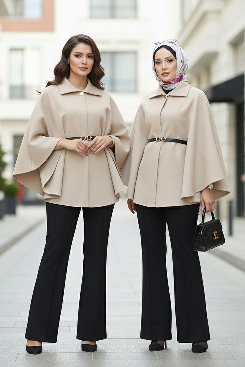 Sıcak modayı koruyan Kemer Detaylı Kaşe Panço ile stilinizi yükseltin! Bu kaliteli kaşe kumaştan üretilmiş tesettür panço, sonbahar ve kış aylarınızı şık ve konforlu geçirmeniz için idealdir. 30 derecede hassas yıkama ile temizliğini kolayca sağlayabilirsiniz. Üzerinde bluzun iç kısmında kemer için özel ilikler bulunan bu ürün, pratik ve estetik bir kullanım sunar. Gömlek yaka tasarımı ile şıklığınızı tamamlayın. Modelin üzerindeki beden 38-40 olup, astarsız yapısıyla hafif ve rahattır. Kış aylarında şıklığınızdan ödün vermek istemeyenler için ideal seçim!
