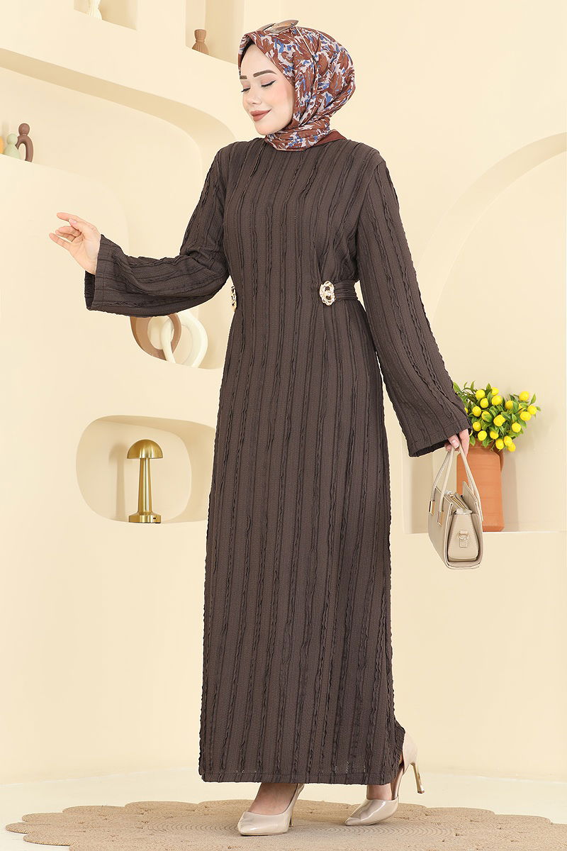Kemer Detaylı Örme Elbise Kahve