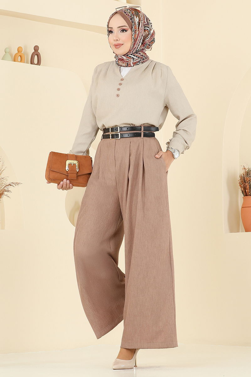 Kemer Detaylı Sofia Takım Taş&Koyu Vizon