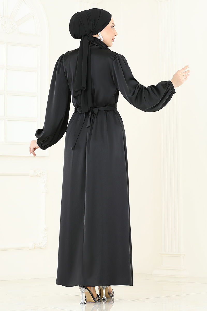 Kemeri Güllü Saten Abiye Siyah