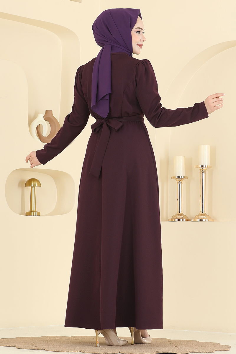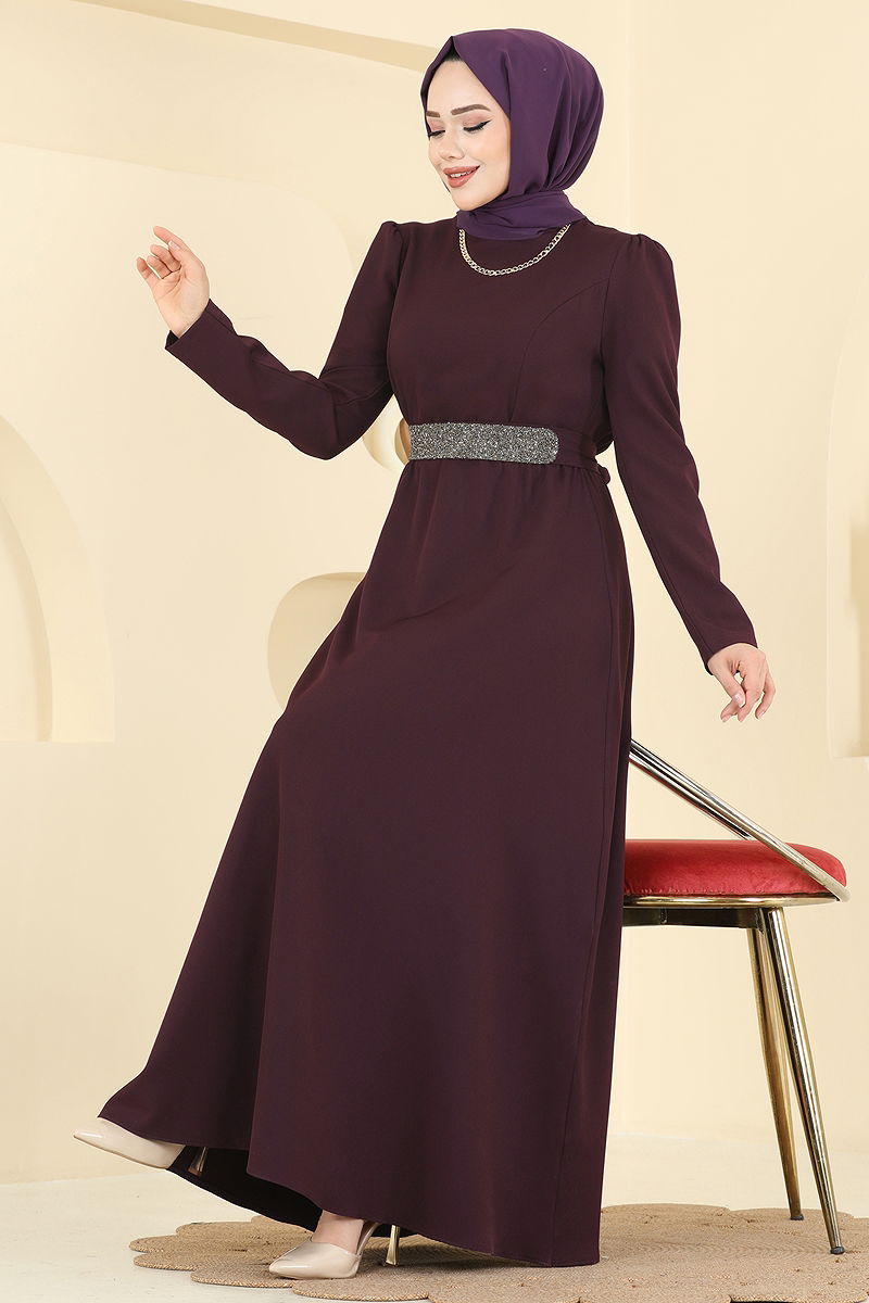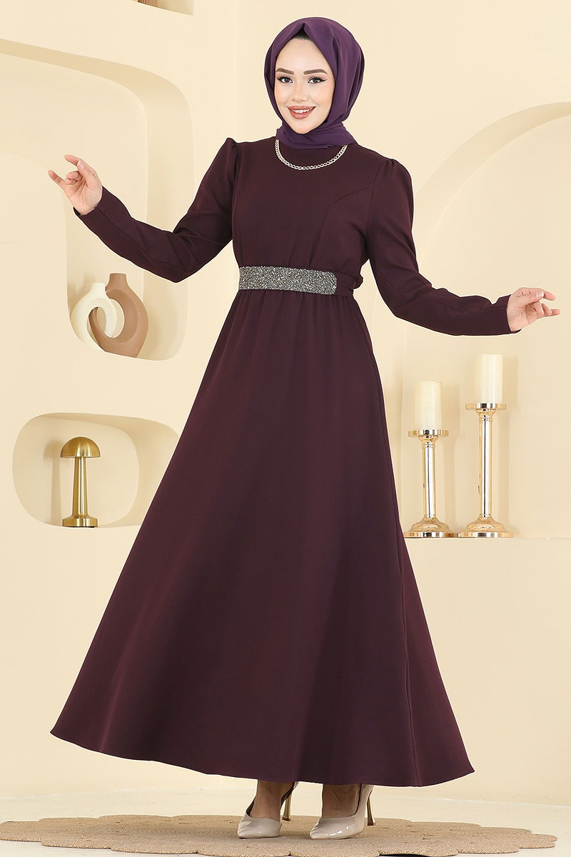 The Sparkling Belt Dabıl Dress is a meticulously designed modest wear suitable for special occasions. Ideal for all seasons, this dress should only be dry cleaned. Made from woven Dabıl fabric, it features a crew neck and a lining-free design for a contemporary look. Its back zipper makes it practical to use. The included belt enhances the elegance of the dress, while the elastic waist ensures comfort. The belt is optional and can be used at your discretion.