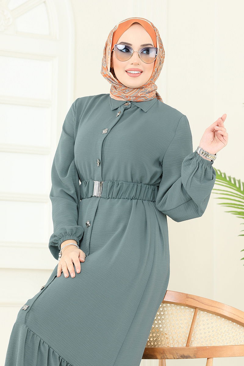 Ürün Özelliği : Yeni sezon tesettür moda ürünüdür. Ürün Gömlek yakadır. Ürün Önden düğmelidir. Astarsızdır. Kemer ürüne dahildir, isteğe bağlı kullanılmayabilir. Manşeti lastiklidir. Konsept fotoğraf çekimlerinden dolayı üründe ton farklılığı olabilir.