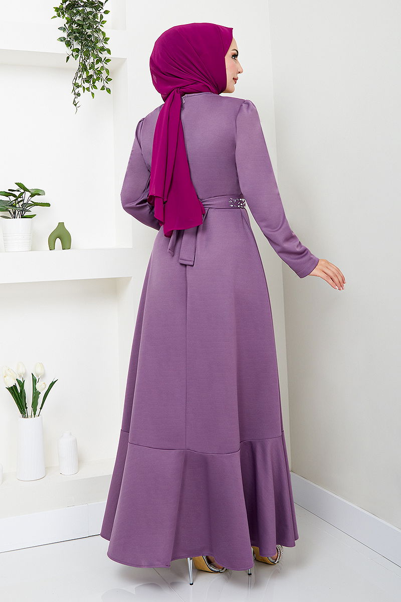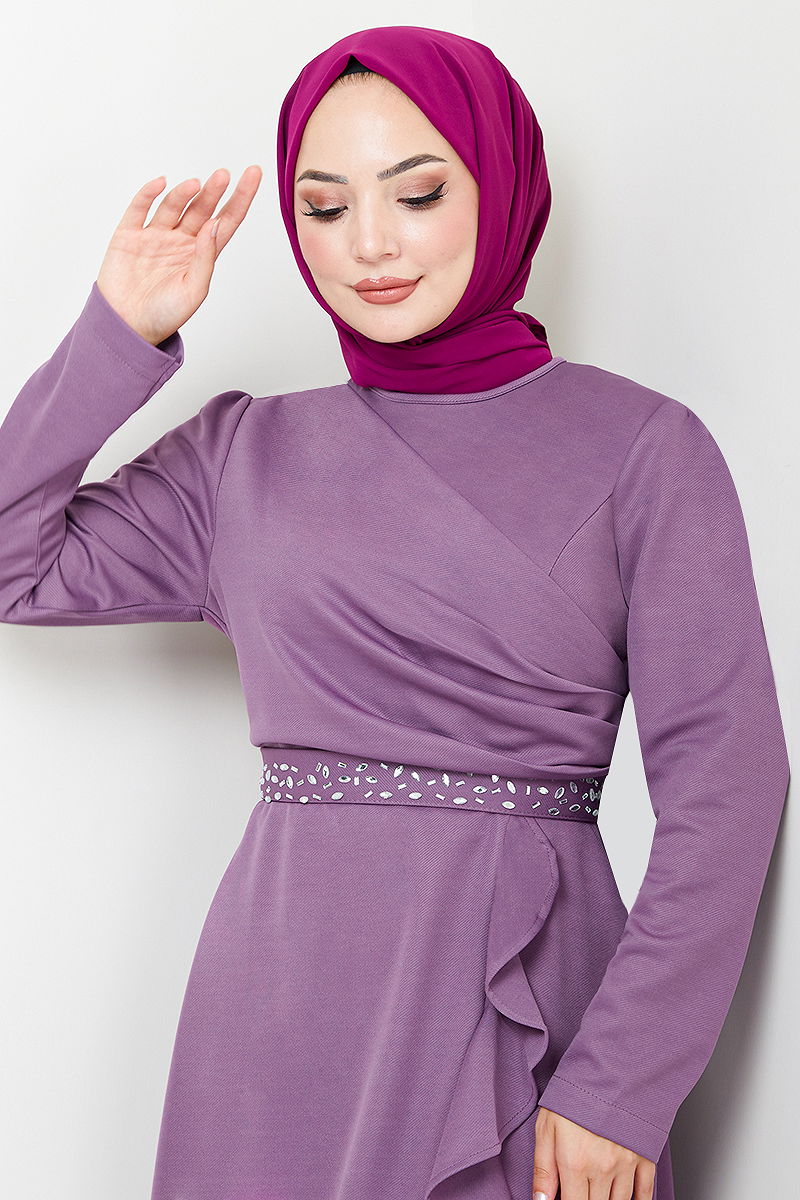 Kemeri Taş Detaylı Elbise 4445KTR927-M Lila