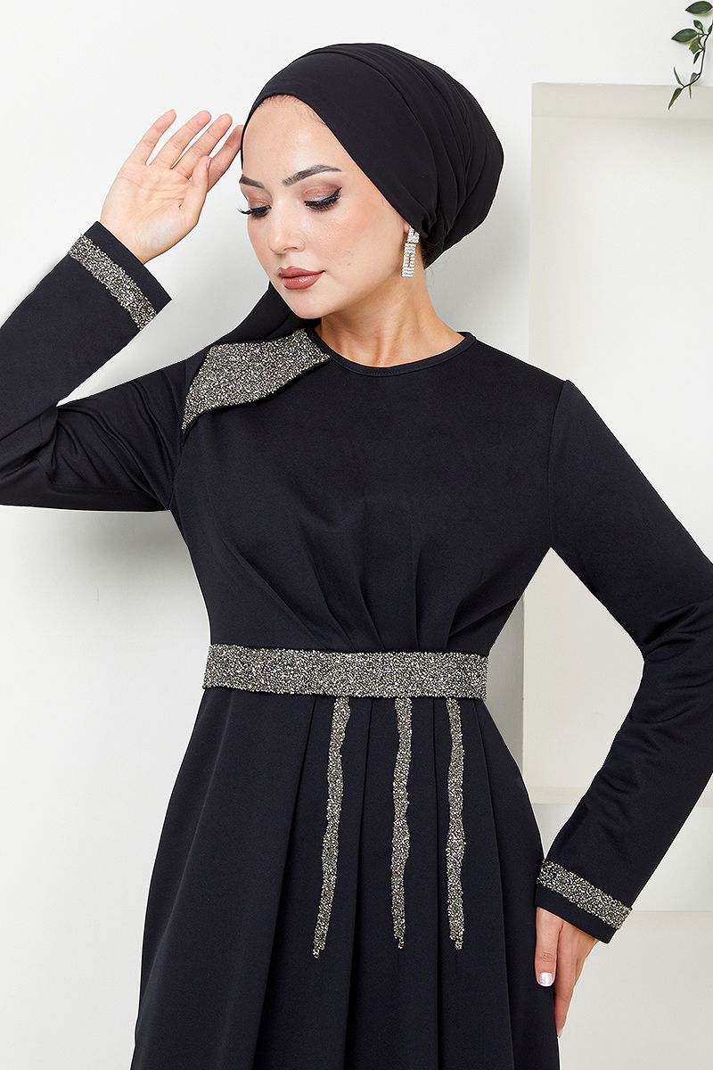 Kemeri Taş İşlemeli Abiye Siyah