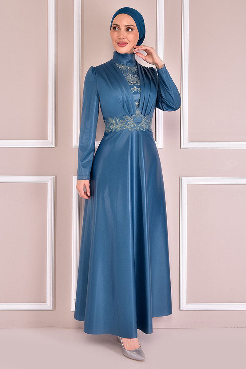 Kemeri Taş İşlemeli Abiye Mavi