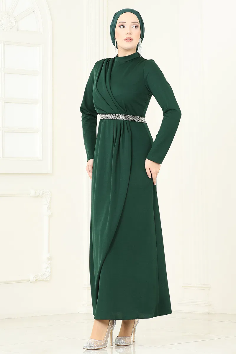 Kemeri Taşlı Abiye Elbise 5729EDF311 Zümrüt