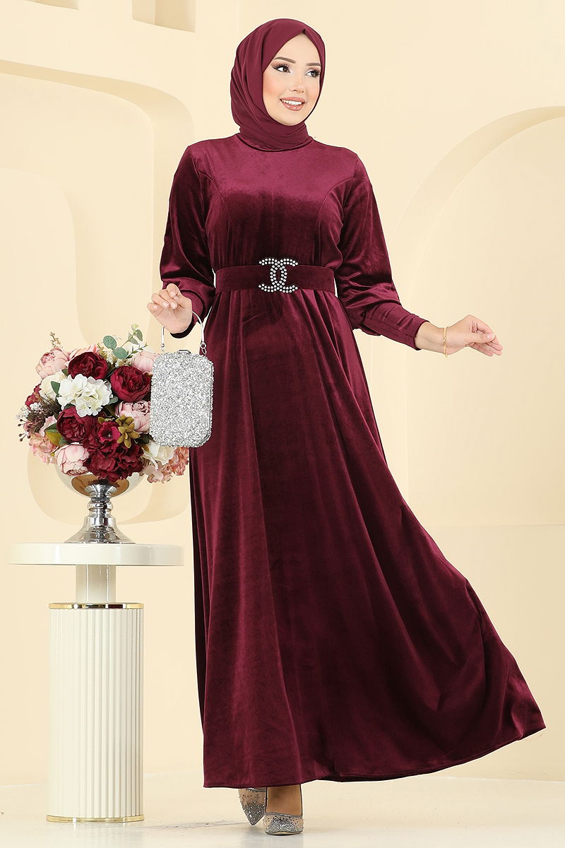 Upgrade your winter wardrobe with this stylish and modern Stone Belted Velvet Dress. Ideal for autumn and winter use, this dress is made from delicate velvet fabric. It features a stand-up collar and a back zipper detail, offering a unique sophistication with its lining-free structure and integrated stone belt. The belt is fixed to prevent waving and can be optionally removed. Washable at 30 degrees, this dress promises practical and elegant use.