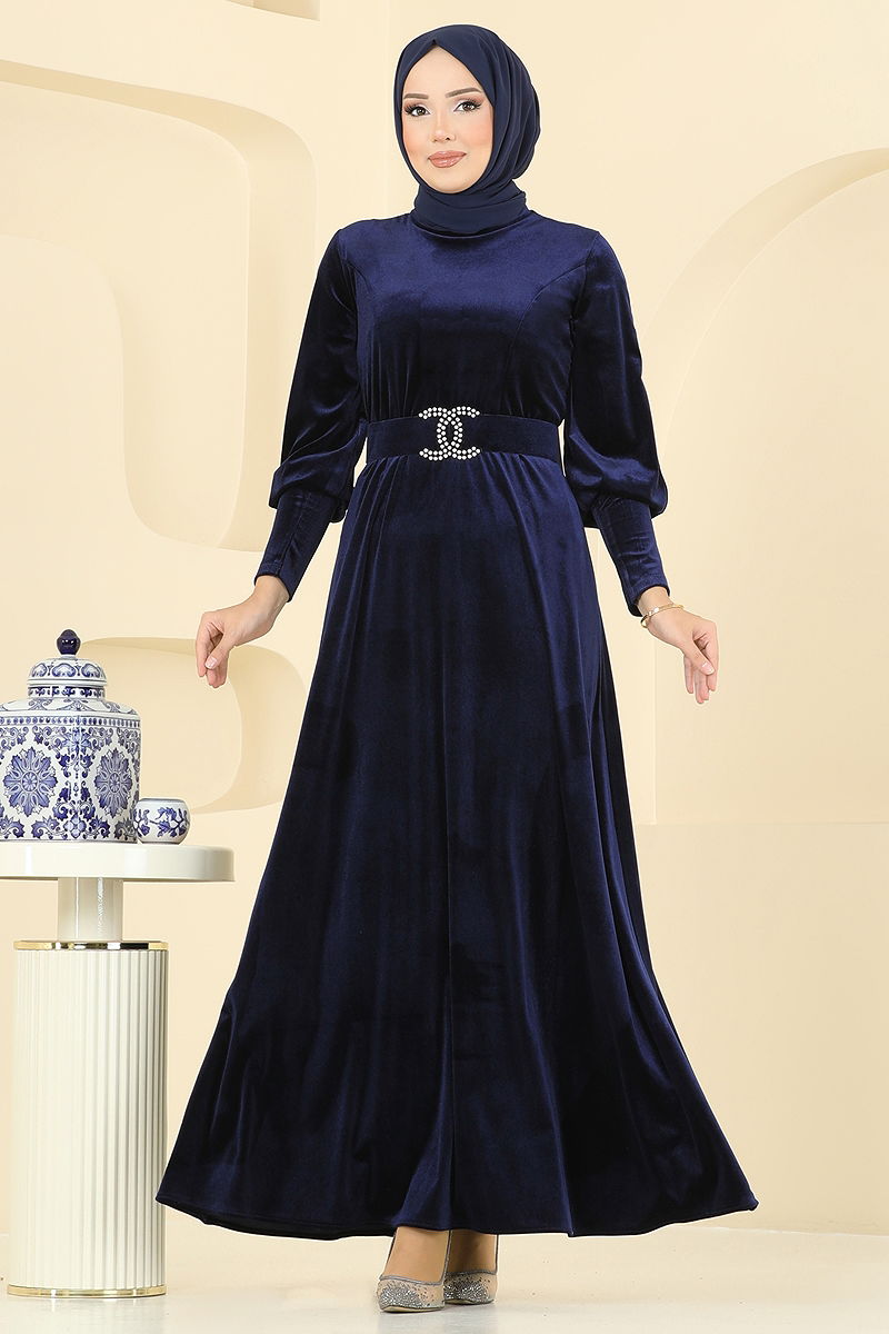 Upgrade your winter wardrobe with this stylish and modern Stone Belted Velvet Dress. Ideal for autumn and winter use, this dress is made from delicate velvet fabric. It features a stand-up collar and a back zipper detail, offering a unique sophistication with its lining-free structure and integrated stone belt. The belt is fixed to prevent waving and can be optionally removed. Washable at 30 degrees, this dress promises practical and elegant use.