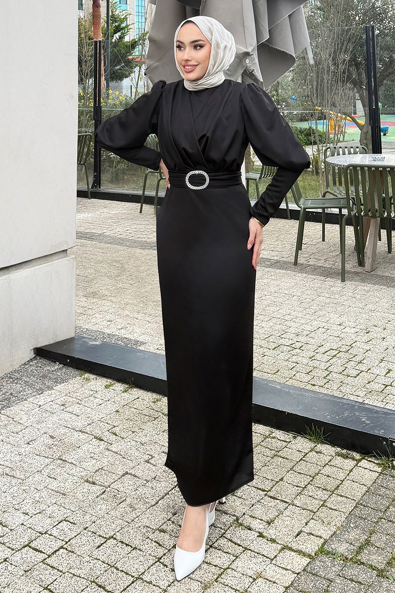 Kemeri Tokalı Krep Elbise 0414ALGK1170 Siyah