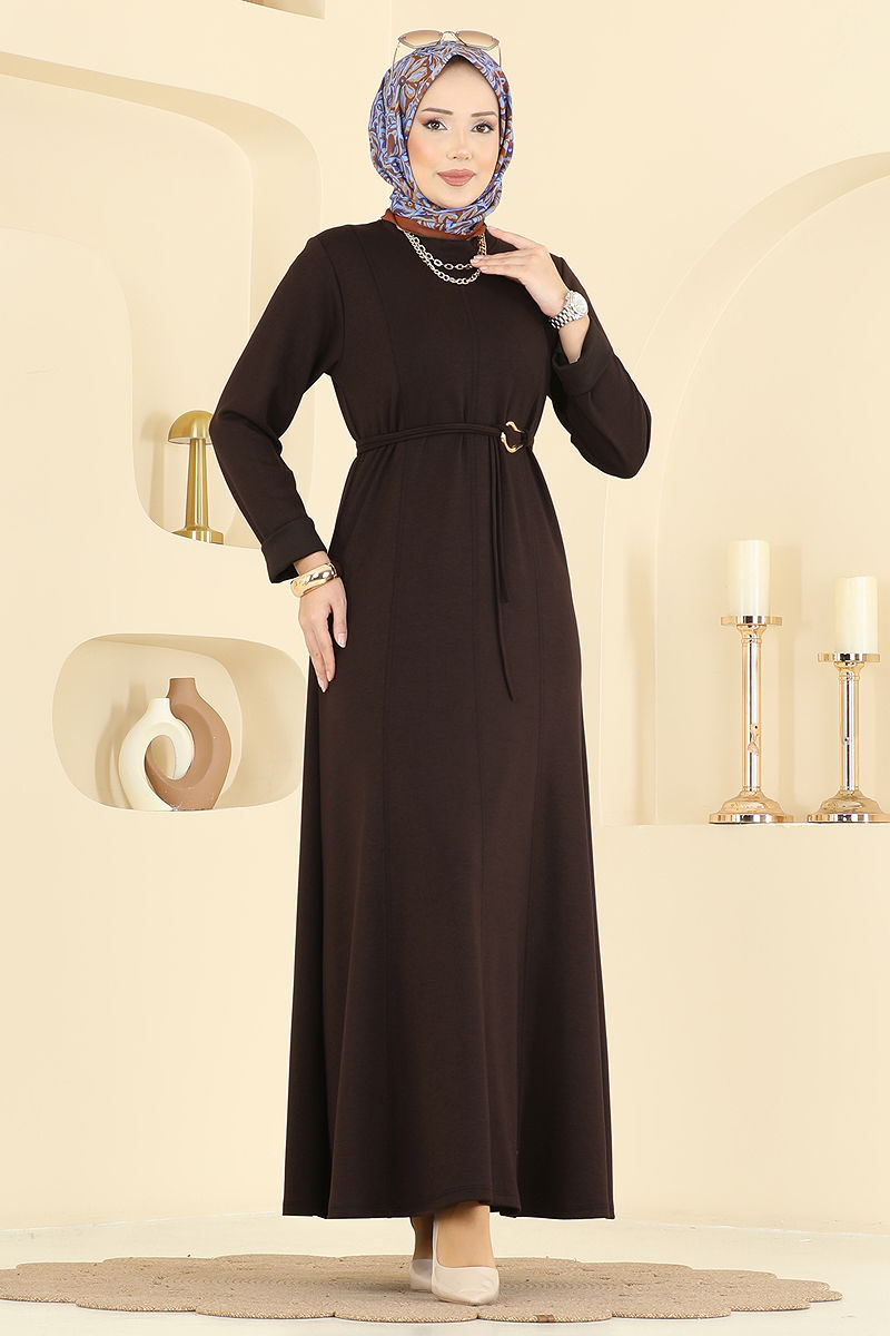 Kemeri Tokalı Modal Elbise 2637MSZ1172 Kahve