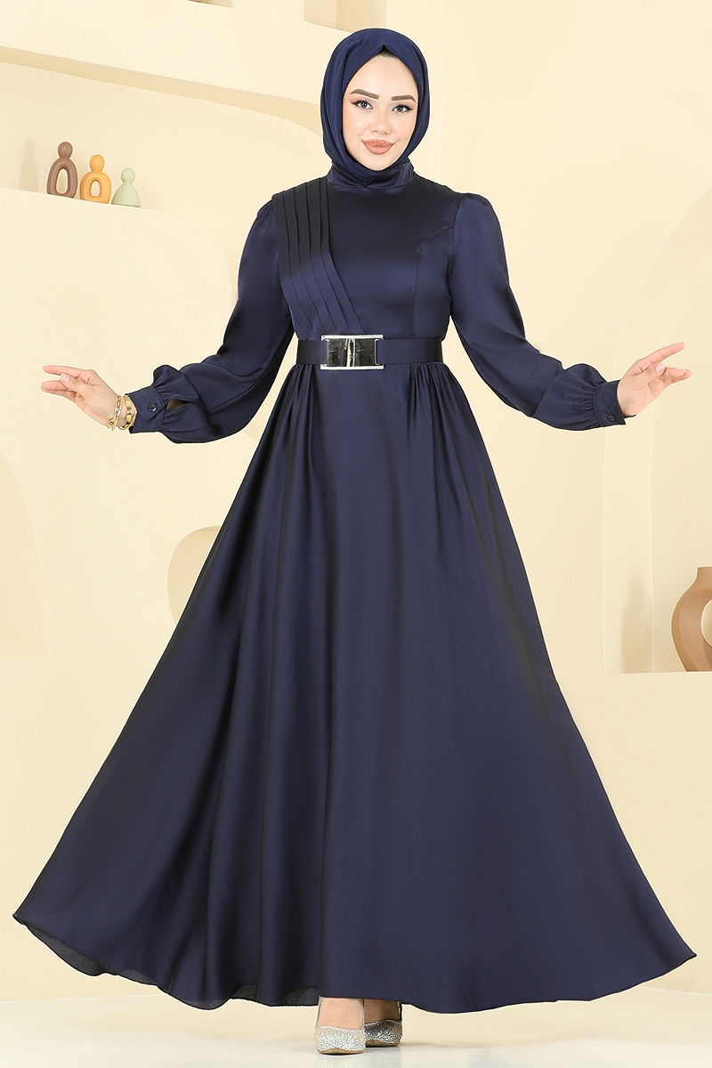 Elegan bir seçim olan Kemeri Tokalı Saten Abiye, dört mevsim giyilebilen özel bir tesettür ürünüdür. Kobe ve saten kumaşın lüks dokunuşu, yarım hakim yakası ve sırttan fermuarlı tasarımıyla dikkat çeker. Kemerli tasarımı sayesinde modern bir siluet sunar. Ürün astarsız olup, sadece kuru temizleme ile temizlenmelidir. Versatil bir şıklık arayanlar için idealdir.