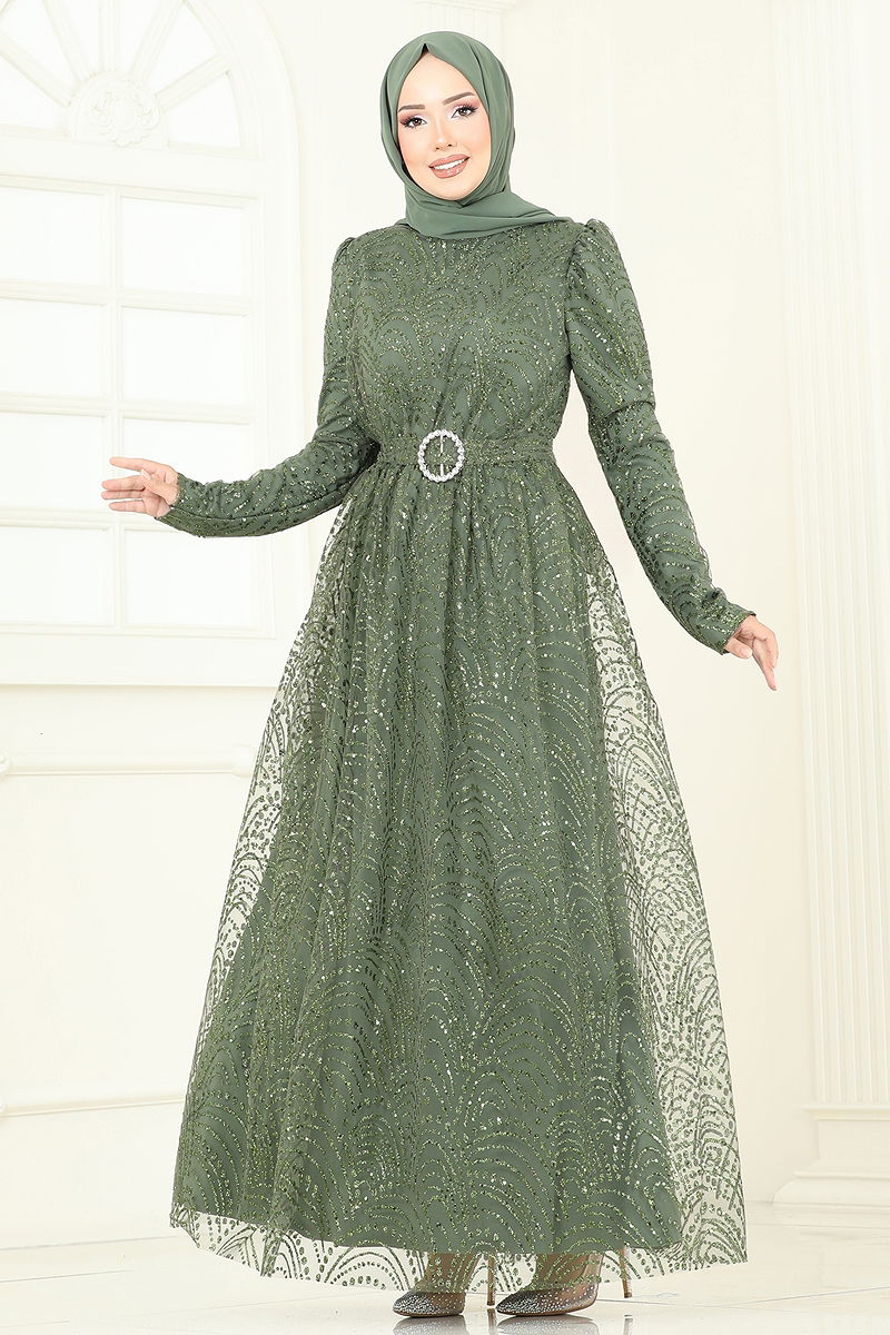 Kemeri Tokalı Simli Abiye Haki