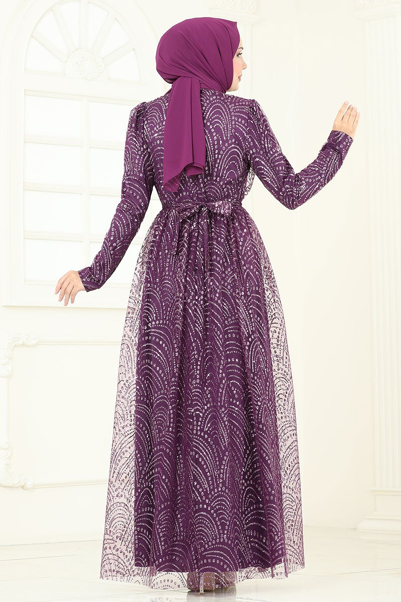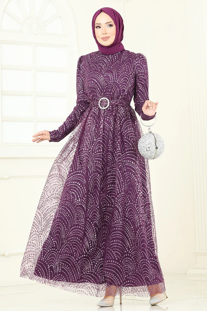 Kemeri Tokalı Simli Abiye 5699EDF311 Mürdüm