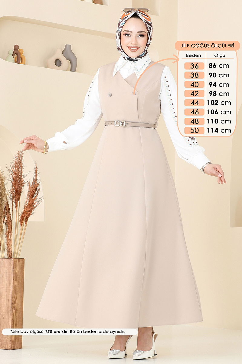 Ürün Özelliği : Yeni sezon tesettür moda ürünüdür. Ürün V Yaka yakadır. Ürün Önden düğmelidir. Astarsızdır. Düğmeler aktiftir. Kemer ürüne dahildir, isteğe bağlı kullanılmayabilir. Bluz ürüne dahil değildir. Ürün kullanım amacını göstermek için bluz ile örnek kombin yapılmıştır. Konsept fotoğraf çekimlerinden dolayı üründe ton farklılığı olabilir.