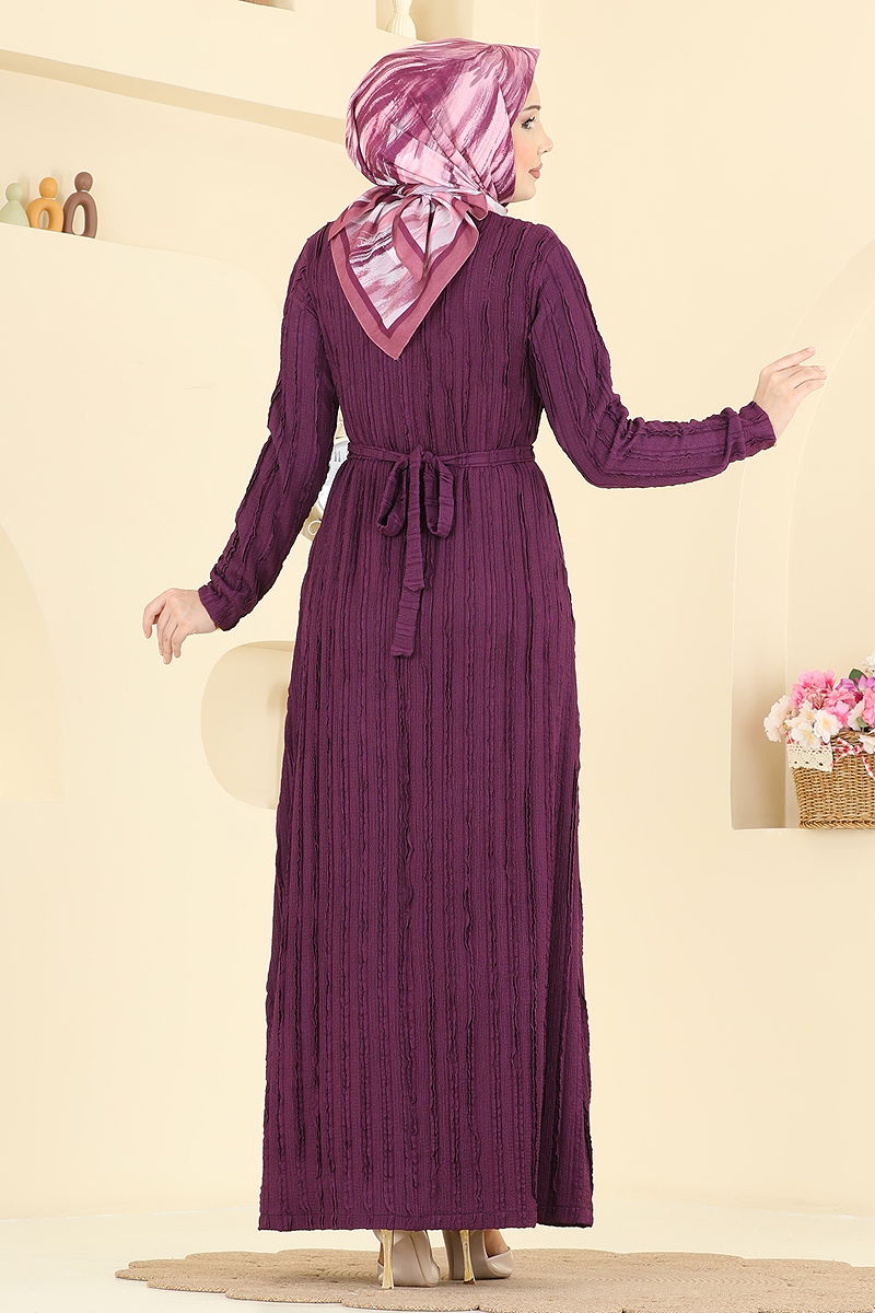 Kemeri Zincir Detaylı Elbise 7001OZN1046 Mor