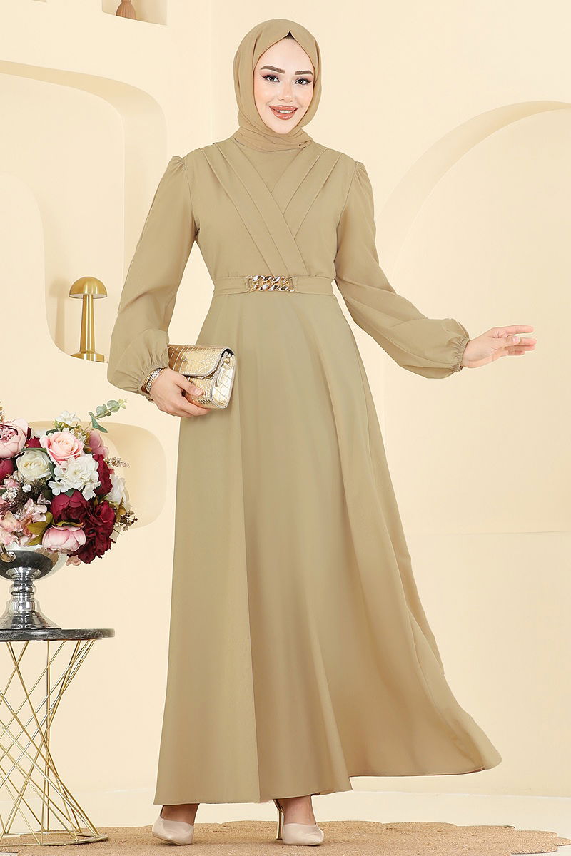 Kemeri Zincirli Abiye Elbise Çağla