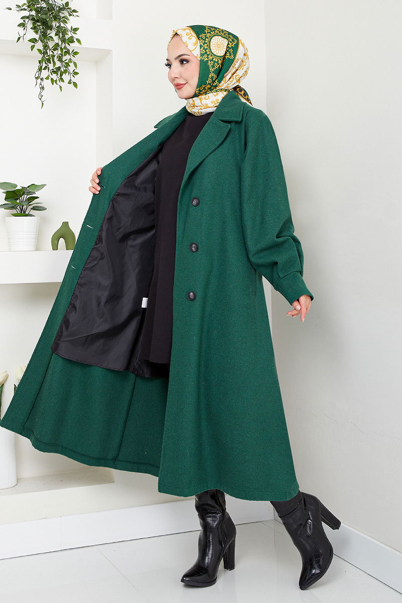 Kemerli Astarlı Kaşe Kaban Zümrüt