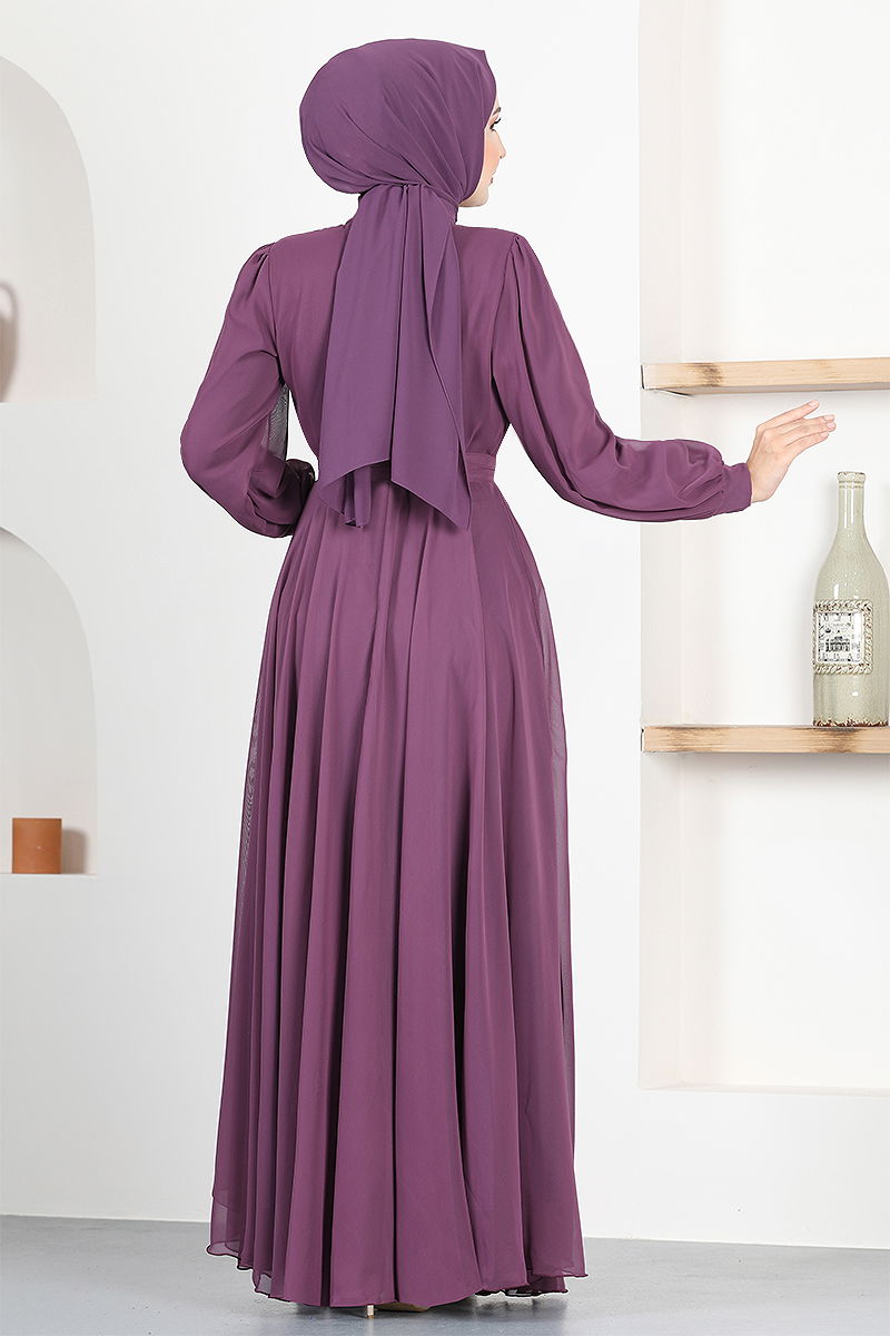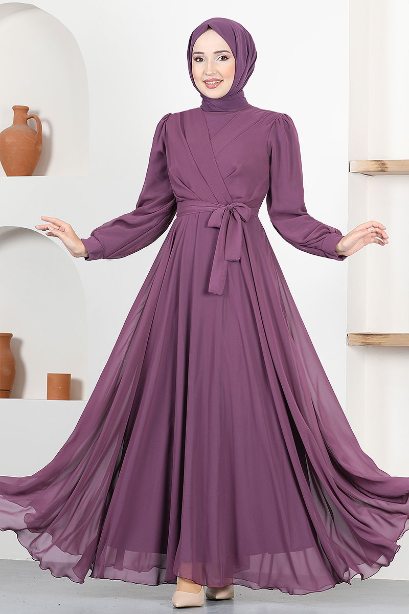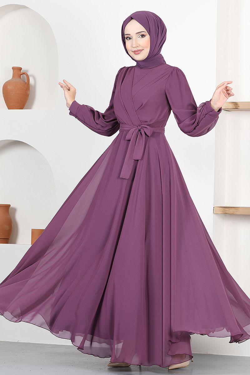 Kemerli Şifon Abiye END5525-M Koyu Gül Kurusu