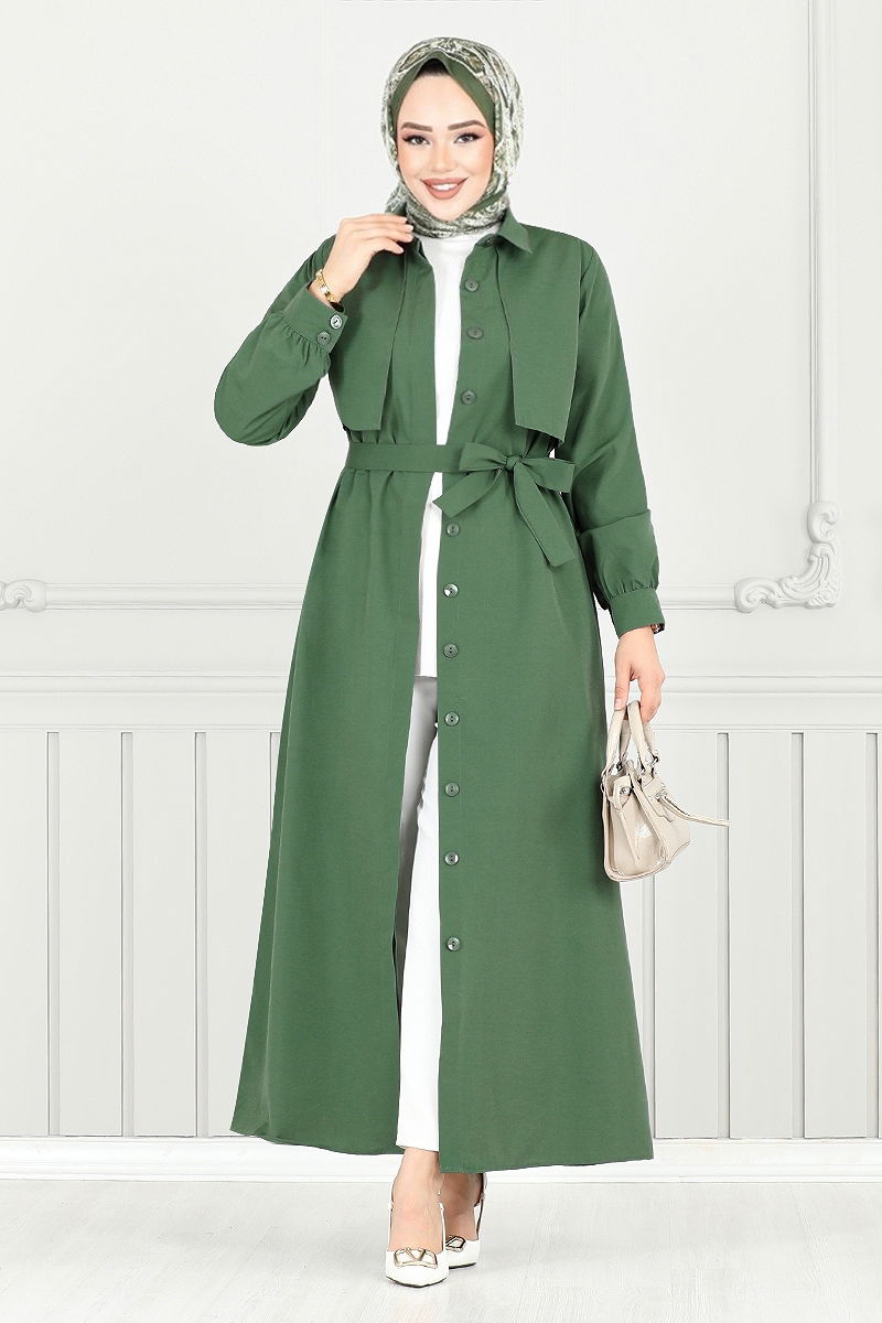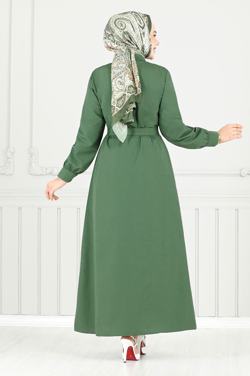 Kemerli Tesettür Elbise 019MR1077-M Haki