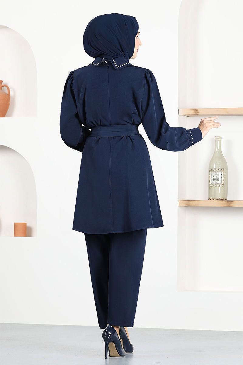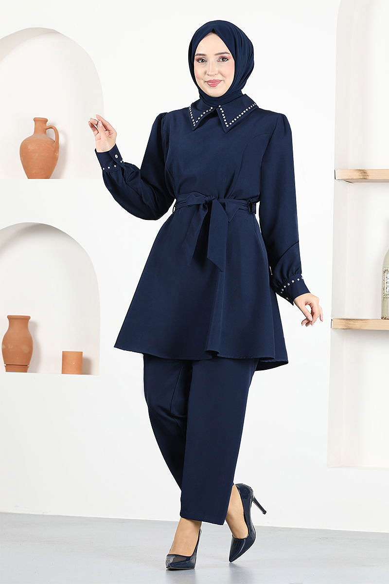Kombine Dahil Ürünler : Tunik ve pantolon.Kumaş Özelliği : Birinci sınıf Krep kumaştan imal edilmiştir. Dört Mevsim sezonunda kullanılabilir.