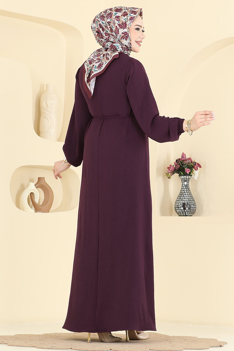 Kemerli Toka Detaylı Elbise 2661MSZ1172 Mürdüm