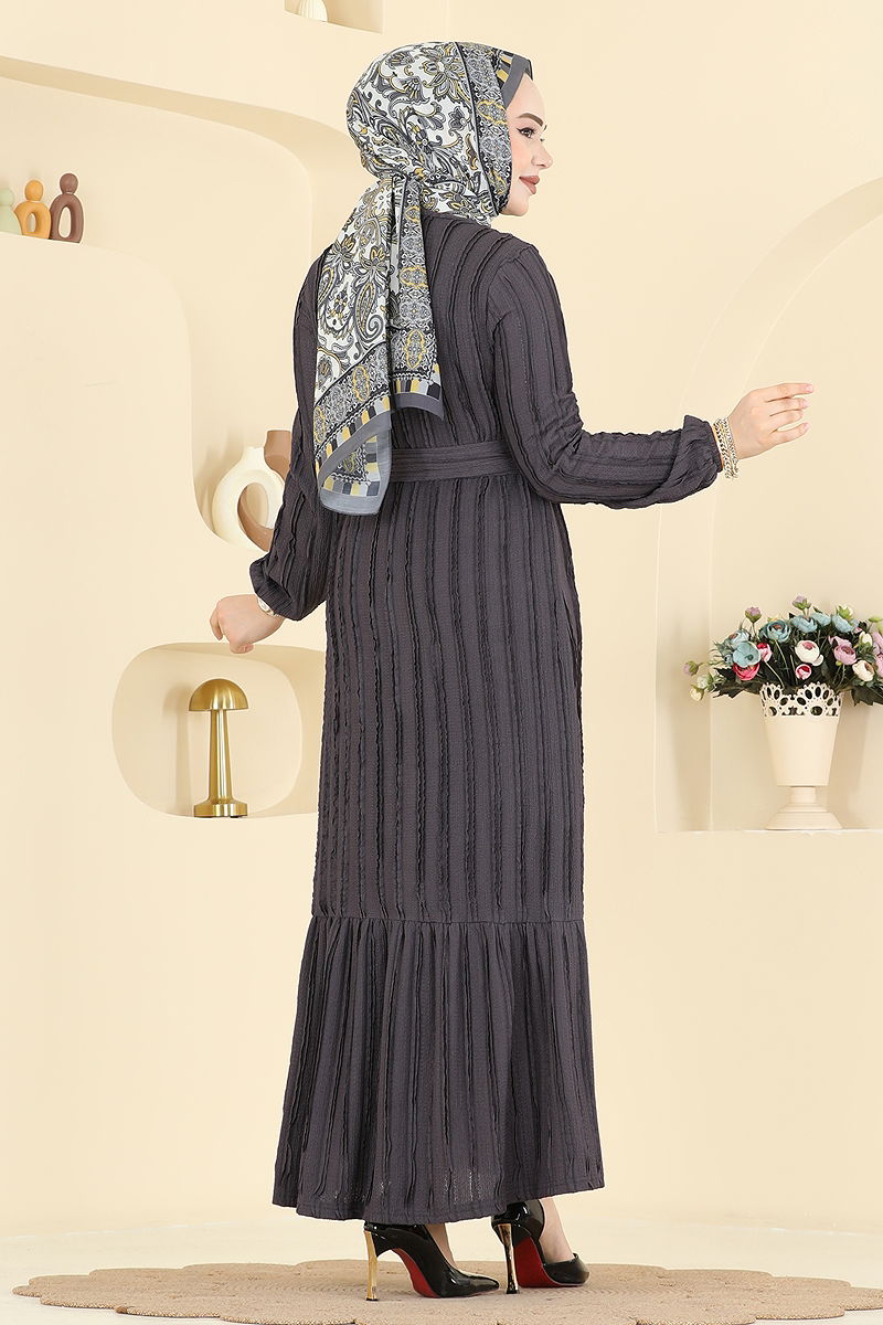 Klasik Çizgili Uzun Elbise 726PM271 Antrasit