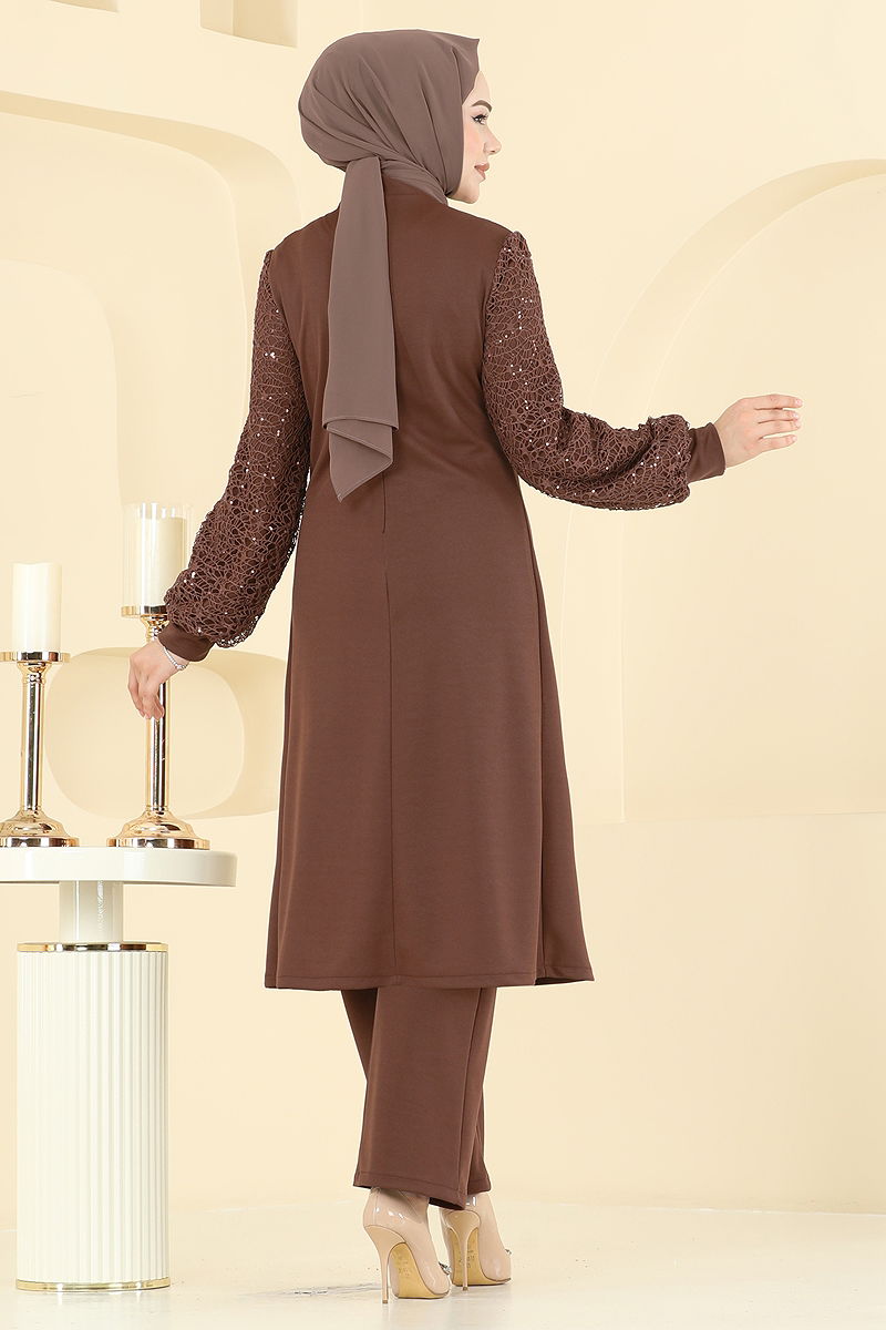 Kolları Fileli Şık Takım ASM2832 Taba