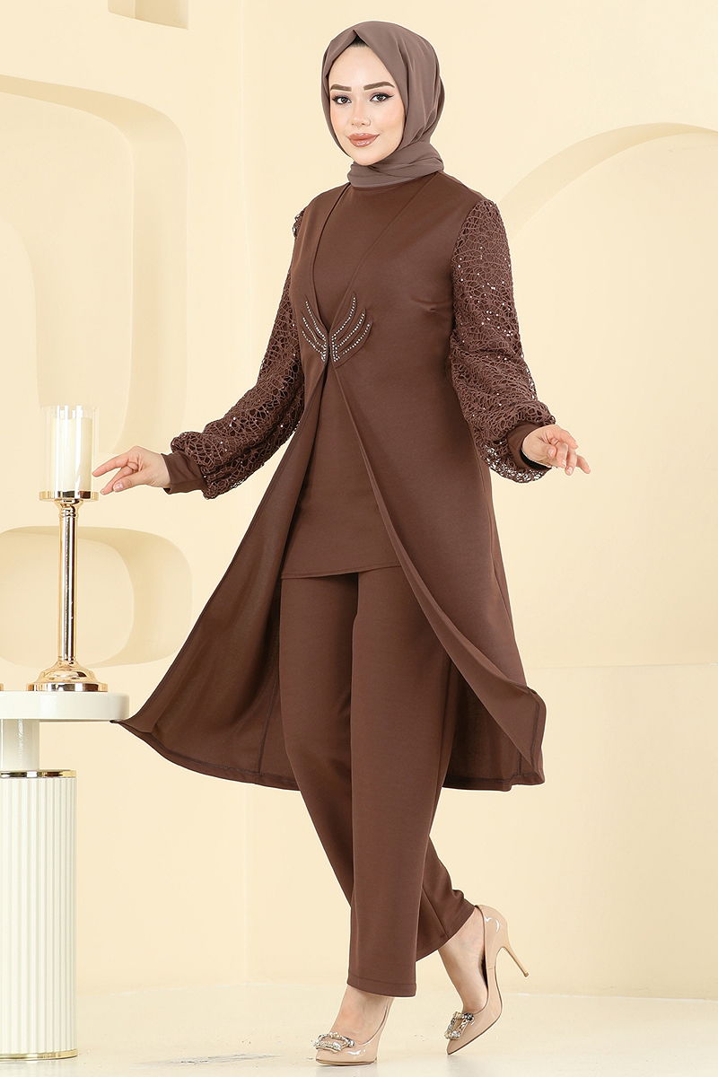 Kolları Fileli Şık Takım Taba