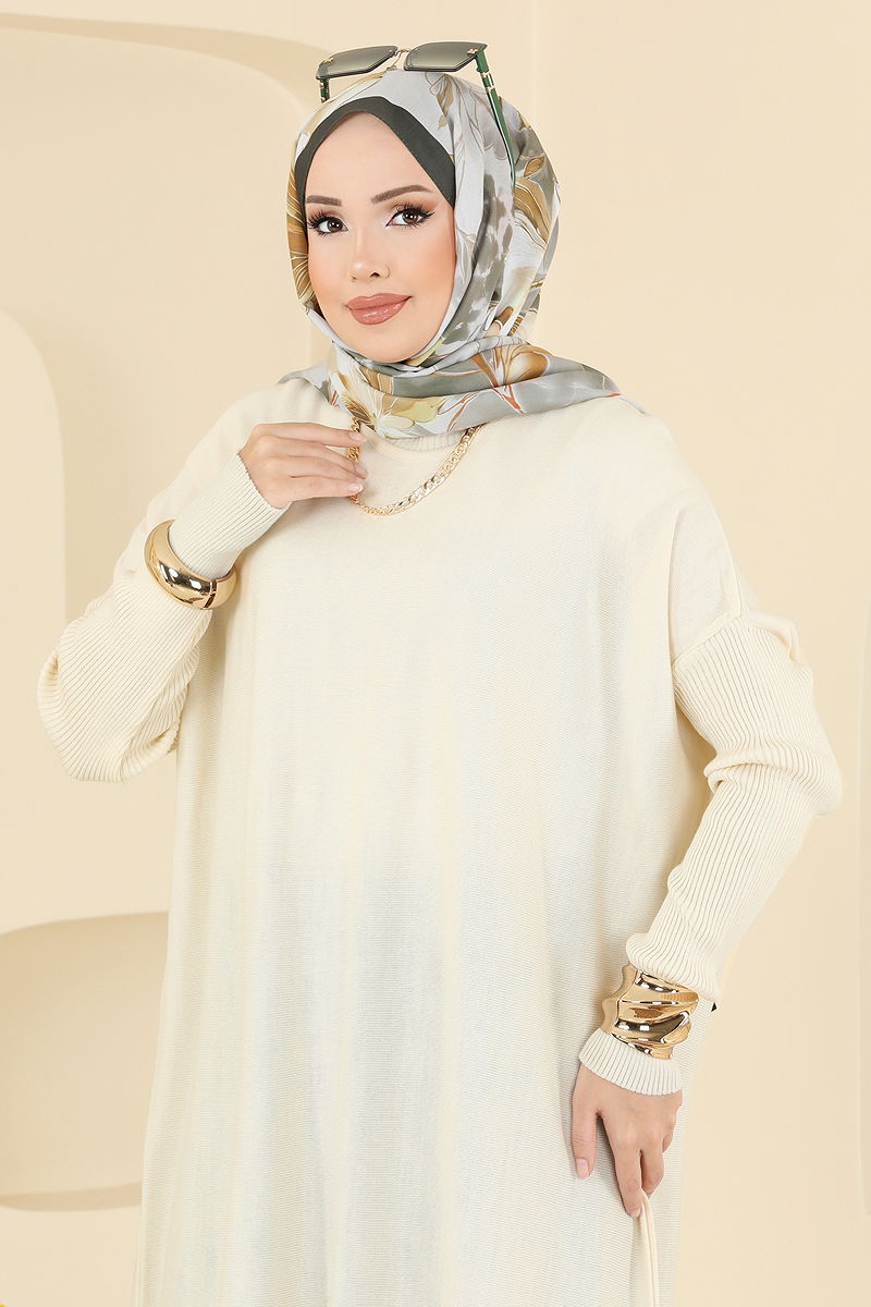 Kolları Fitilli Triko Tunik Ekru