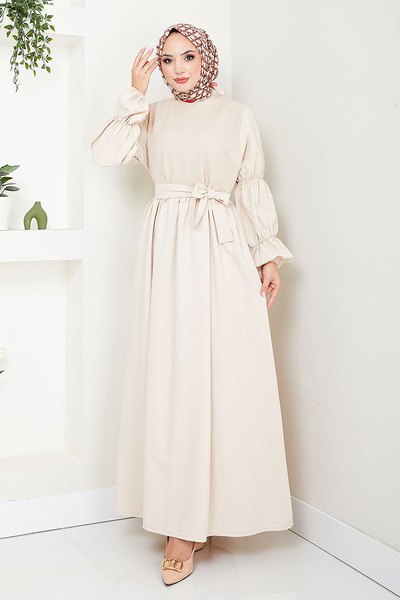المنتج لديه ياقة دائرية. المنتج به أزرار من الخلف. غير مبطنة.. الحزام متضمن، ،يمكن استخدامها حسب الرغبة السوار مطاطي. قد يكون هناك اختلاف في الدرجة اللونية في المنتج بسبب التقاط الصور الفوتوغرافية.
